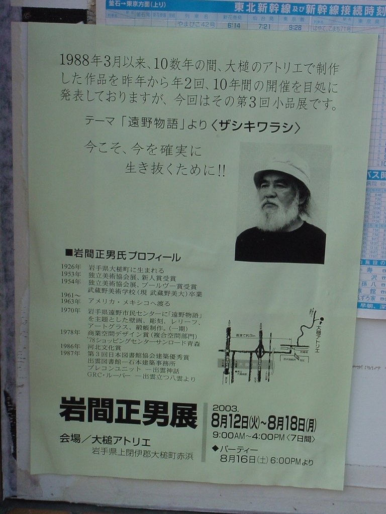 大槌町生まれ 岩間 正男氏 2003 8月12日(火)~ 岩間 正男展 ポスター