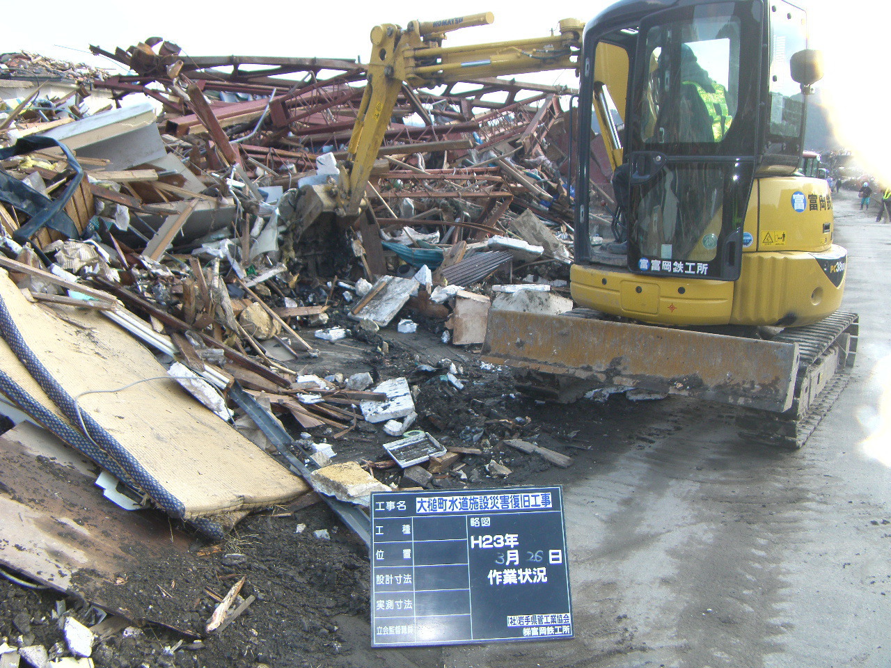 大槌小学校付近ガレキ撤去 拡大表示 ダウンロード 識別子 : 2789 タイトルよみ : オオツチショウガッコウフキンガレキテッキョ 說明・要約 : 国道沿いのガレキ撤去 作成者(撮影者) : 大槌町水道事業所 作成者(撮影者)よみ : オオツチチョウスイドウジギョウショ 提供者 : 大槌町 水道事業所 提供者よみ : オオツチチョウ スイドウジギョウショ 撮影(作成)場所 : 岩手県上閉伊郡大槌町 上町 撮影(作成)場所よみ : イワテケンカミヘイグンオオツチチョウ カミチョウ 作成日・撮影日 : 2011年 3月 26日 カテゴリー : がれき処理 地域 : 町方地区 備考 : 一般公開 震災事象 ガレキ・啓開・インフラ復旧 > インフラ復旧 > 水道
