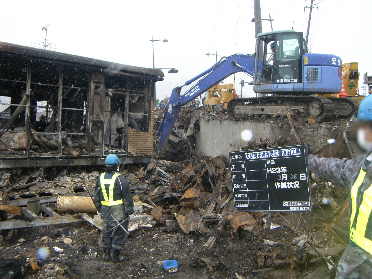 大槌小学校付近ガレキ撤去 拡大表示 ダウンロード 識別子 : 2798 タイトルよみ : オオツチショウガッコウフキンガレキテッキョ 說明・要約 : 国道沿いのガレキ撤去 作成者(撮影者) : 大槌町水道事業所 作成者(撮影者)よみ : オオツチチョウスイドウジギョウショ 提供者 : 大槌町 水道事業所 提供者よみ : オオツチチョウ スイドウジギョウショ 撮影(作成)場所 : 岩手県上閉伊郡大槌町 上町 撮影(作成)場所よみ : イワテケンカミヘイグンオオツチチョウ カミチョウ 作成日・撮影日 : 2011年 3月 26日 カテゴリー : がれき処理 地域 : 町方地区 備考 : 一般公開 震災事象 ガレキ・啓開・インフラ復旧 > インフラ復旧 > 水道