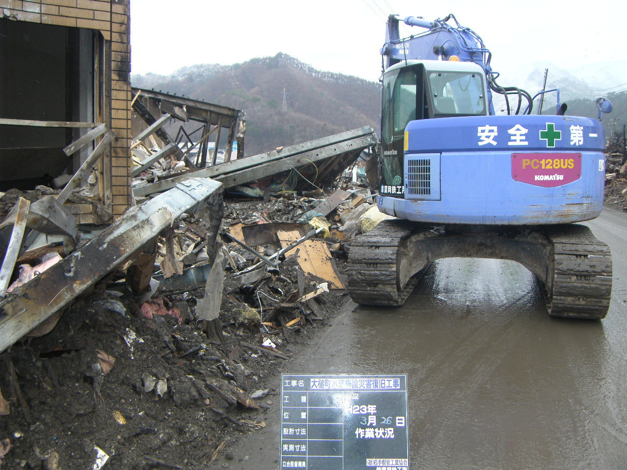 大槌小学校付近ガレキ撤去 拡大表示 ダウンロード 識別子 : 2799 タイトルよみ : オオツチショウガッコウフキンガレキテッキョ 說明・要約 : 国道沿いのガレキ撤去 作成者(撮影者) : 大槌町水道事業所 作成者(撮影者)よみ : オオツチチョウスイドウジギョウショ 提供者 : 大槌町 水道事業所 提供者よみ : オオツチチョウ スイドウジギョウショ 撮影(作成)場所 : 岩手県上閉伊郡大槌町 上町 撮影(作成)場所よみ : イワテケンカミヘイグンオオツチチョウ カミチョウ 作成日・撮影日 : 2011年 3月 26日 カテゴリー : がれき処理 地域 : 町方地区 備考 : 一般公開 震災事象 ガレキ・啓開・インフラ復旧 > インフラ復旧 > 水道