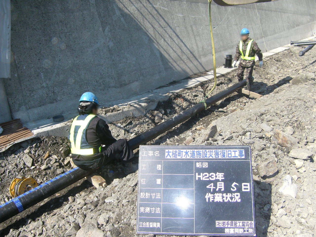 安渡水道復旧工事 拡大表示 ダウンロード 識別子 : 2805 タイトルよみ : アンドスイドウフッキュウコウジ 說明・要約 : 水道管の設置 作成者(撮影者) : 大槌町水道事業所 作成者(撮影者)よみ : オオツチチョウスイドウジギョウショ 提供者 : 大槌町 水道事業所 提供者よみ : オオツチチョウ スイドウジギョウショ 撮影(作成)場所 : 岩手県上閉伊郡大槌町 安渡 撮影(作成)場所よみ : イワテケンカミヘイグンオオツチチョウ アンド 作成日・撮影日 : 2011年 4月 5日 カテゴリー : 水道 地域 : 安渡地区 備考 : 一般公開 震災事象 ガレキ・啓開・インフラ復旧 > インフラ復旧 > 水道