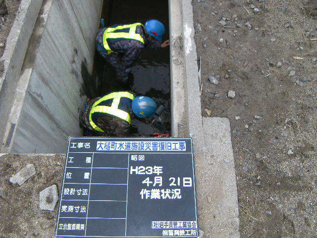 吉里吉里海岸付近水道管工事 拡大表示 ダウンロード 識別子 : 2812 タイトルよみ : キリキリカイガンフキンスイドウカンコウジ 說明・要約 : 排水溝の中に水道管設置 作成者(撮影者) : 大槌町水道事業所 作成者(撮影者)よみ : オオツチチョウスイドウジギョウショ 提供者 : 大槌町 水道事業所 提供者よみ : オオツチチョウ スイドウジギョウショ 撮影(作成)場所 : 岩手県上閉伊郡大槌町 吉里吉里 撮影(作成)場所よみ : イワテケンカミヘイグンオオツチチョウ キリキリ 作成日・撮影日 : 2011年 4月 21日 カテゴリー : 水道 地域 : 吉里吉里地区 備考 : 一般公開 震災事象 ガレキ・啓開・インフラ復旧 > インフラ復旧 > 水道