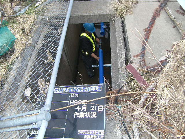 吉里吉里海岸付近水道管工事 拡大表示 ダウンロード 識別子 : 2816 タイトルよみ : キリキリカイガンフキンスイドウカンコウジ 說明・要約 : 排水溝の中に水道管設置 作成者(撮影者) : 大槌町水道事業所 作成者(撮影者)よみ : オオツチチョウスイドウジギョウショ 提供者 : 大槌町 水道事業所 提供者よみ : オオツチチョウ スイドウジギョウショ 撮影(作成)場所 : 岩手県上閉伊郡大槌町 吉里吉里 撮影(作成)場所よみ : イワテケンカミヘイグンオオツチチョウ キリキリ 作成日・撮影日 : 2011年 4月 21日 カテゴリー : 水道 地域 : 吉里吉里地区 備考 : 一般公開 震災事象 ガレキ・啓開・インフラ復旧 > インフラ復旧 > 水道