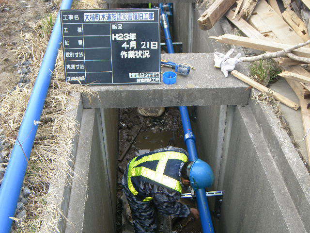 吉里吉里海岸付近水道管工事 拡大表示 ダウンロード 識別子 : 2823 タイトルよみ : キリキリカイガンフキンスイドウカンコウジ 說明・要約 : 排水溝の中に水道管設置 作成者(撮影者) : 大槌町水道事業所 作成者(撮影者)よみ : オオツチチョウスイドウジギョウショ 提供者 : 大槌町 水道事業所 提供者よみ : オオツチチョウ スイドウジギョウショ 撮影(作成)場所 : 岩手県上閉伊郡大槌町 吉里吉里 撮影(作成)場所よみ : イワテケンカミヘイグンオオツチチョウ キリキリ 作成日・撮影日 : 2011年 4月 21日 カテゴリー : 水道 地域 : 吉里吉里地区 備考 : 一般公開 震災事象 ガレキ・啓開・インフラ復旧 > インフラ復旧 > 水道