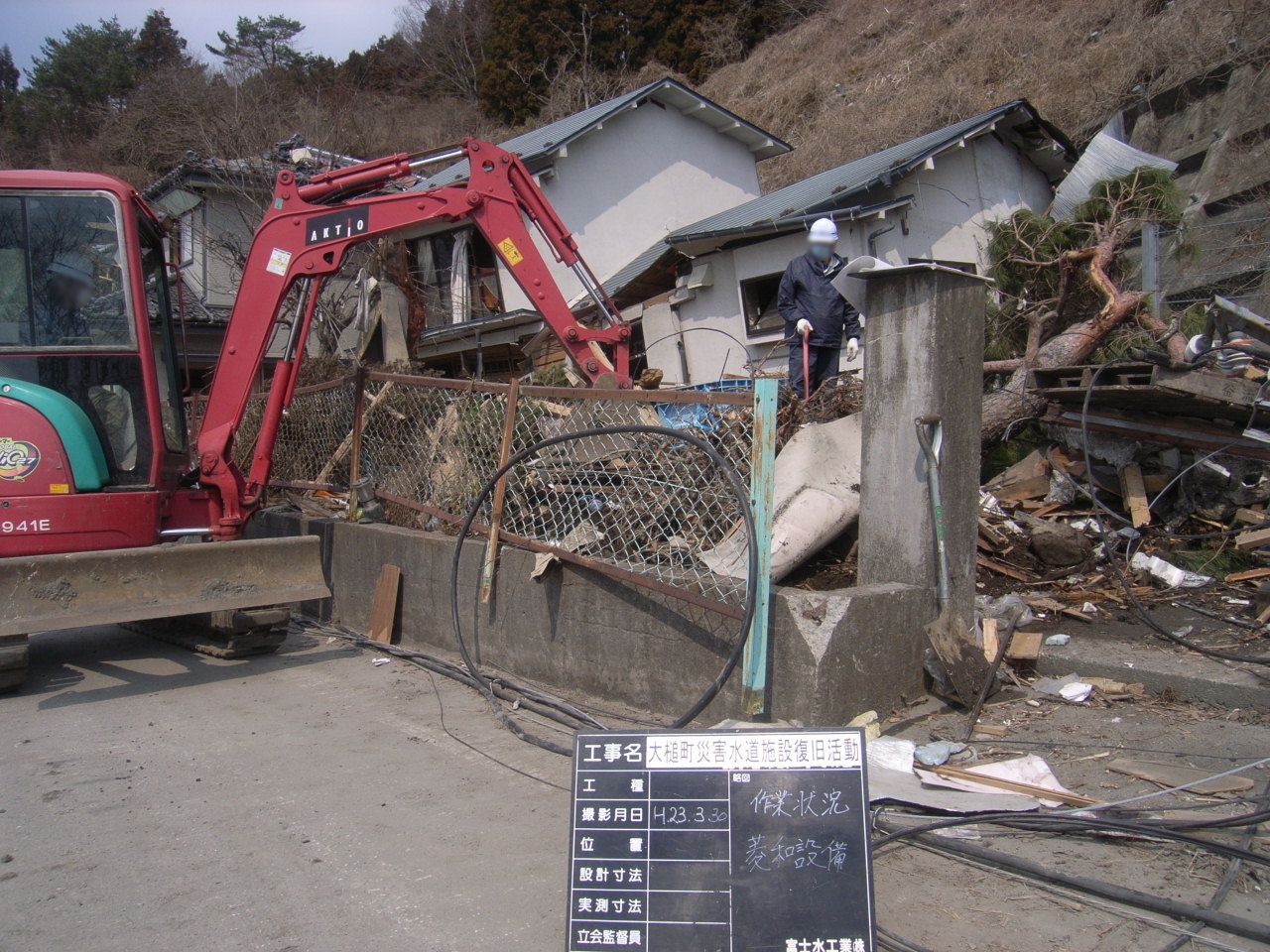 安渡 赤浜 上町付近のガレキ撤去 拡大表示 ダウンロード 識別子 : 2837 タイトルよみ : アンド アカハマ カミチョウフキンノガレキテッキョ 說明・要約 : 水道工事のためガレキ撤去 作成者(撮影者) : 大槌町水道事業所 作成者(撮影者)よみ : オオツチチョウスイドウジギョウショ 提供者 : 大槌町 水道事業所 提供者よみ : オオツチチョウ スイドウジギョウショ 撮影(作成)場所 : 岩手県上閉伊郡大槌町 安渡 撮影(作成)場所よみ : イワテケンカミヘイグンオオツチチョウ アンド 作成日・撮影日 : 2011年 4月 1日 カテゴリー : がれき処理 水道 地域 : 安渡地区 備考 : 一般公開 震災事象 ガレキ・啓開・インフラ復旧 > インフラ復旧 > 水道