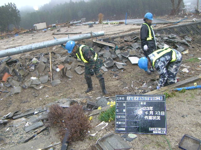 水道管設置前の整地 拡大表示 ダウンロード 識別子 : 2842 タイトルよみ : スイドウカンセッチマエノセイチ 說明・要約 : ガレキの撤去、整地 作成者(撮影者) : 大槌町水道事業所 作成者(撮影者)よみ : オオツチチョウスイドウジギョウショ 提供者 : 大槌町 水道事業所 提供者よみ : オオツチチョウ スイドウジギョウショ 撮影(作成)場所 : 岩手県上閉伊郡大槌町 大槌町 撮影(作成)場所よみ : イワテケンカミヘイグンオオツチチョウ オオツチチョウ 作成日・撮影日 : 2011年 4月 23日 カテゴリー : がれき処理 地域 : その他 備考 : 一般公開 震災事象 ガレキ・啓開・インフラ復旧 > インフラ復旧 > 水道
