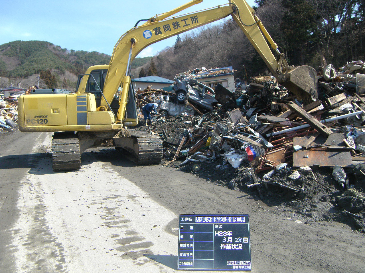 大槌小学校付近と安渡付近のガレキ撤去 拡大表示 ダウンロード 識別子 : 2864 タイトルよみ : オオツチショウガッコウフキントアンドフキンノガレキテッキョ 說明・要約 : 重機でガレキの撤去 作成者(撮影者) : 大槌町水道事業所 作成者(撮影者)よみ : オオツチチョウスイドウジギョウショ 提供者 : 大槌町 水道事業所 提供者よみ : オオツチチョウ スイドウジギョウショ 撮影(作成)場所 : 岩手県上閉伊郡大槌町 安渡 撮影(作成)場所よみ : イワテケンカミヘイグンオオツチチョウ アンド 作成日・撮影日 : 2011年 3月 28日 カテゴリー : がれき処理 地域 : 安渡地区 備考 : 一般公開 震災事象 ガレキ・啓開・インフラ復旧 > インフラ復旧 > 水道