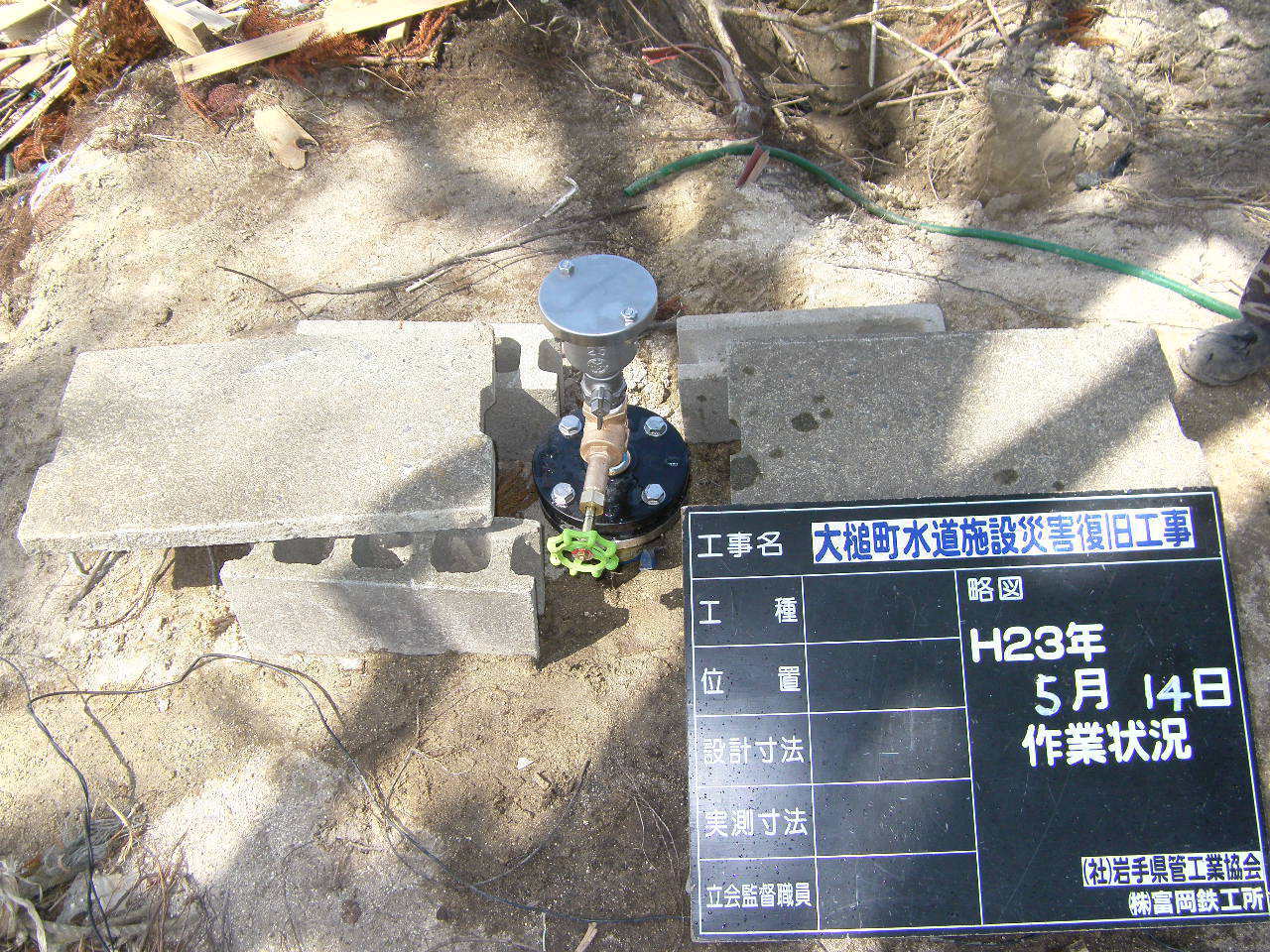 水道管設備の取り付け 拡大表示 ダウンロード 識別子 : 2948 タイトルよみ : スイドウカンセツビノトリツケ 說明・要約 : 道路沿いの側溝内の水道管を整備 作成者(撮影者) : 大槌町水道事業所 作成者(撮影者)よみ : オオツチチョウスイドウジギョウショ 提供者 : 大槌町 水道事業所 提供者よみ : オオツチチョウ スイドウジギョウショ 撮影(作成)場所 : 岩手県上閉伊郡大槌町 大槌町 撮影(作成)場所よみ : イワテケンカミヘイグンオオツチチョウ オオツチチョウ 作成日・撮影日 : 2011年 5月 14日 カテゴリー : 水道 地域 : その他 備考 : 一般公開 震災事象 ガレキ・啓開・インフラ復旧 > インフラ復旧 > 水道