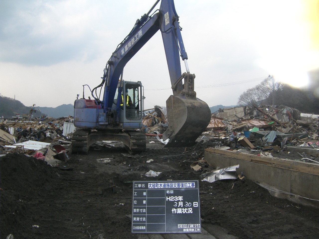 安渡付近のガレキ撤去 拡大表示 ダウンロード 識別子 : 2980 タイトルよみ : アンドフキンノガレキテッキョ 說明・要約 : 道路沿いを重機でガレキ撤去 作成者(撮影者) : 大槌町水道事業所 作成者(撮影者)よみ : オオツチチョウスイドウジギョウショ 提供者 : 大槌町 水道事業所 提供者よみ : オオツチチョウ スイドウジギョウショ 撮影(作成)場所 : 岩手県上閉伊郡大槌町 安渡 撮影(作成)場所よみ : イワテケンカミヘイグンオオツチチョウ アンド 作成日・撮影日 : 2011年 3月 30日 カテゴリー : がれき処理 地域 : 安渡地区 備考 : 一般公開 震災事象 ガレキ・啓開・インフラ復旧 > インフラ復旧 > 水道