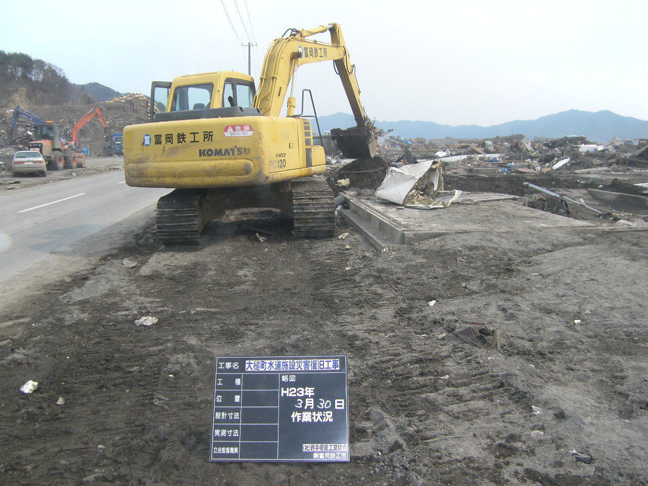 安渡付近のガレキ撤去 拡大表示 ダウンロード 識別子 : 2983 タイトルよみ : アンドフキンノガレキテッキョ 說明・要約 : 道路沿いを重機でガレキ撤去 作成者(撮影者) : 大槌町水道事業所 作成者(撮影者)よみ : オオツチチョウスイドウジギョウショ 提供者 : 大槌町 水道事業所 提供者よみ : オオツチチョウ スイドウジギョウショ 撮影(作成)場所 : 岩手県上閉伊郡大槌町 安渡 撮影(作成)場所よみ : イワテケンカミヘイグンオオツチチョウ アンド 作成日・撮影日 : 2011年 3月 30日 カテゴリー : がれき処理 地域 : 安渡地区 備考 : 一般公開 震災事象 ガレキ・啓開・インフラ復旧 > インフラ復旧 > 水道