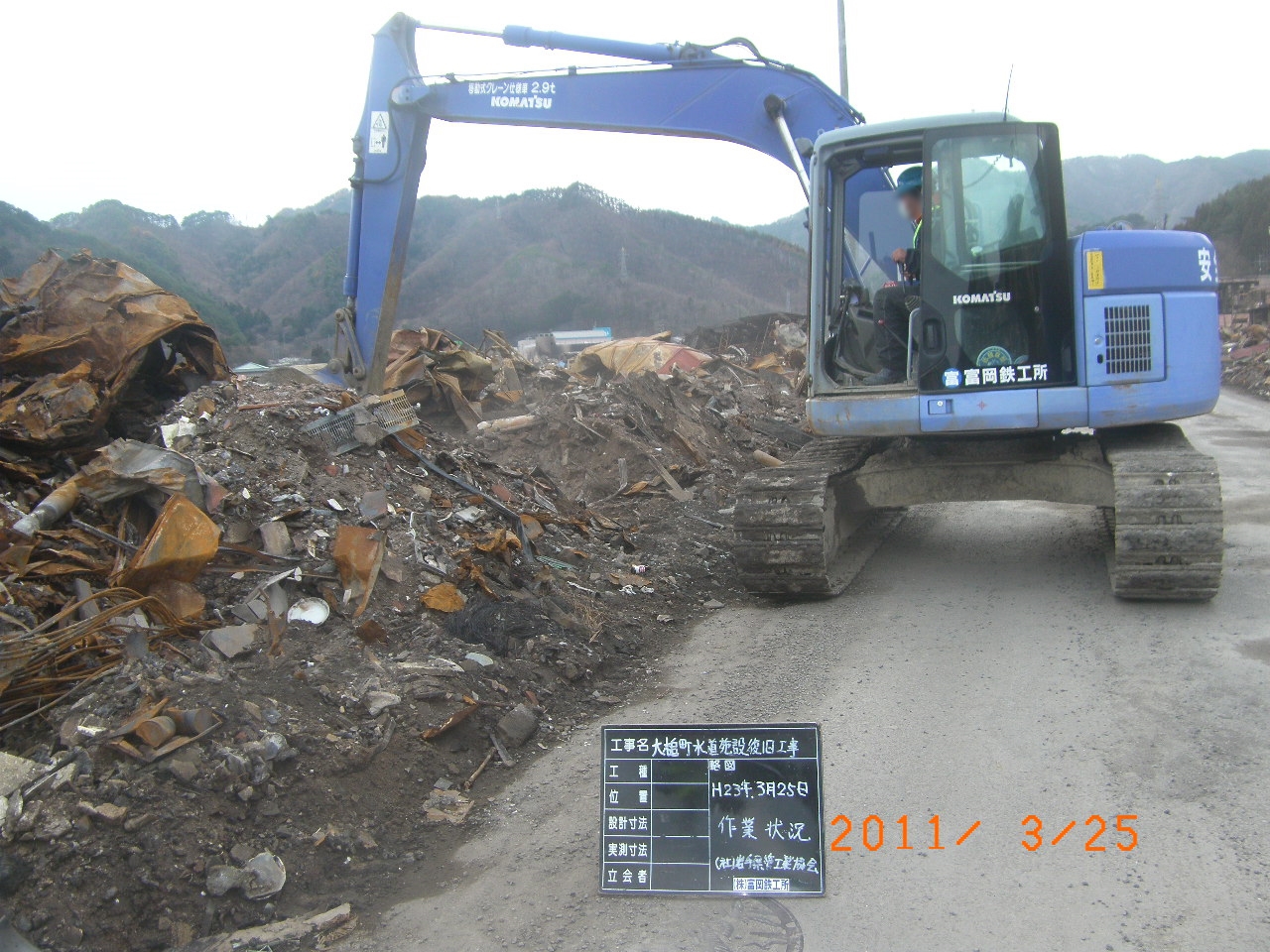 国道沿いのガレキ撤去 拡大表示 ダウンロード 識別子 : 2993 タイトルよみ : コクドウゾイノガレキテッキョ 說明・要約 : 上町付近の国道沿いでガレキ撤去 作成者(撮影者) : 大槌町水道事業所 作成者(撮影者)よみ : オオツチチョウスイドウジギョウショ 提供者 : 大槌町 水道事業所 提供者よみ : オオツチチョウ スイドウジギョウショ 撮影(作成)場所 : 岩手県上閉伊郡大槌町 上町 撮影(作成)場所よみ : イワテケンカミヘイグンオオツチチョウ カミチョウ 作成日・撮影日 : 2011年 3月 25日 カテゴリー : がれき処理 地域 : 町方地区 備考 : 一般公開 震災事象 ガレキ・啓開・インフラ復旧 > インフラ復旧 > 水道