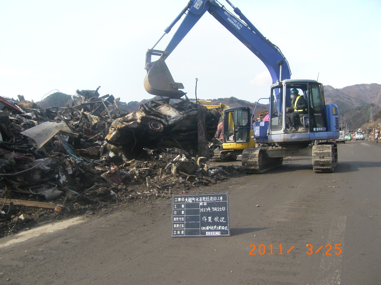 国道沿いのガレキ撤去 拡大表示 ダウンロード 識別子 : 2995 タイトルよみ : コクドウゾイノガレキテッキョ 說明・要約 : 上町付近の国道沿いでガレキ撤去 作成者(撮影者) : 大槌町水道事業所 作成者(撮影者)よみ : オオツチチョウスイドウジギョウショ 提供者 : 大槌町 水道事業所 提供者よみ : オオツチチョウ スイドウジギョウショ 撮影(作成)場所 : 岩手県上閉伊郡大槌町 上町 撮影(作成)場所よみ : イワテケンカミヘイグンオオツチチョウ カミチョウ 作成日・撮影日 : 2011年 3月 25日 カテゴリー : がれき処理 地域 : 町方地区 備考 : 一般公開 震災事象 ガレキ・啓開・インフラ復旧 > インフラ復旧 > 水道