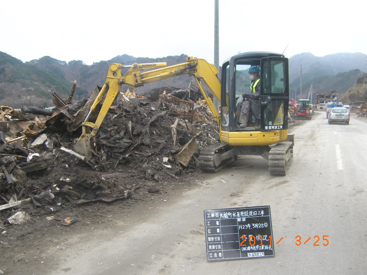 国道沿いのガレキ撤去 拡大表示 ダウンロード 識別子 : 2997 タイトルよみ : コクドウゾイノガレキテッキョ 說明・要約 : 上町付近の国道沿いでガレキ撤去 作成者(撮影者) : 大槌町水道事業所 作成者(撮影者)よみ : オオツチチョウスイドウジギョウショ 提供者 : 大槌町 水道事業所 提供者よみ : オオツチチョウ スイドウジギョウショ 撮影(作成)場所 : 岩手県上閉伊郡大槌町 上町 撮影(作成)場所よみ : イワテケンカミヘイグンオオツチチョウ カミチョウ 作成日・撮影日 : 2011年 3月 25日 カテゴリー : がれき処理 地域 : 町方地区 備考 : 一般公開 震災事象 ガレキ・啓開・インフラ復旧 > インフラ復旧 > 水道