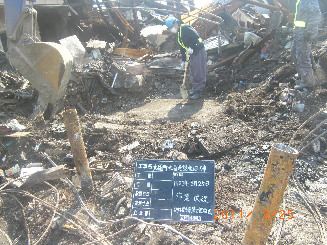 国道沿いのガレキ撤去 拡大表示 ダウンロード 識別子 : 3000 タイトルよみ : コクドウゾイノガレキテッキョ 說明・要約 : 上町付近の国道沿いでガレキ撤去 作成者(撮影者) : 大槌町水道事業所 作成者(撮影者)よみ : オオツチチョウスイドウジギョウショ 提供者 : 大槌町 水道事業所 提供者よみ : オオツチチョウ スイドウジギョウショ 撮影(作成)場所 : 岩手県上閉伊郡大槌町 上町 撮影(作成)場所よみ : イワテケンカミヘイグンオオツチチョウ カミチョウ 作成日・撮影日 : 2011年 3月 25日 カテゴリー : がれき処理 地域 : 町方地区 備考 : 一般公開 震災事象 ガレキ・啓開・インフラ復旧 > インフラ復旧 > 水道