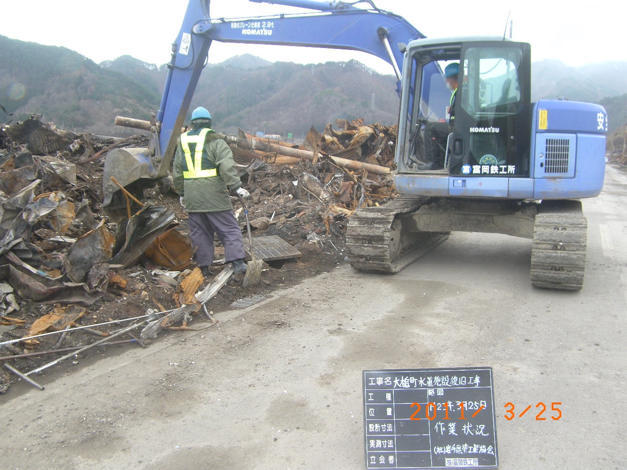 国道沿いのガレキ撤去 拡大表示 ダウンロード 識別子 : 3001 タイトルよみ : コクドウゾイノガレキテッキョ 說明・要約 : 上町付近の国道沿いでガレキ撤去 作成者(撮影者) : 大槌町水道事業所 作成者(撮影者)よみ : オオツチチョウスイドウジギョウショ 提供者 : 大槌町 水道事業所 提供者よみ : オオツチチョウ スイドウジギョウショ 撮影(作成)場所 : 岩手県上閉伊郡大槌町 上町 撮影(作成)場所よみ : イワテケンカミヘイグンオオツチチョウ カミチョウ 作成日・撮影日 : 2011年 3月 25日 カテゴリー : がれき処理 地域 : 町方地区 備考 : 一般公開 震災事象 ガレキ・啓開・インフラ復旧 > インフラ復旧 > 水道