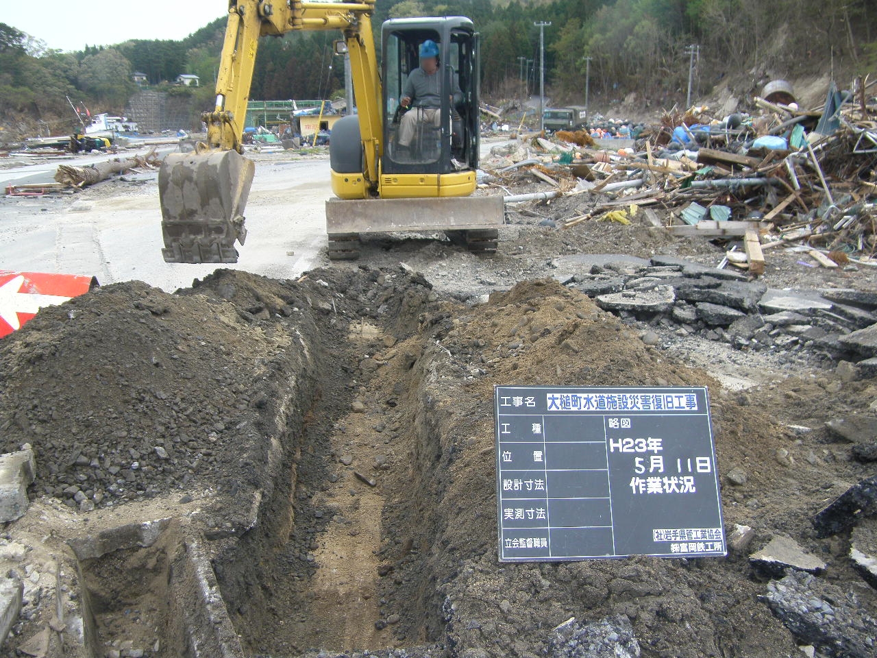 吉里吉里海岸付近の側溝内に水道管を敷設 拡大表示 ダウンロード 識別子 : 3010 タイトルよみ : キリキリカイガンフキンノソッコウナイニスイドウカンヲフセツ 說明・要約 : 側溝の清掃、水道管設置 作成者(撮影者) : 大槌町水道事業所 作成者(撮影者)よみ : オオツチチョウスイドウジギョウショ 提供者 : 大槌町 水道事業所 提供者よみ : オオツチチョウ スイドウジギョウショ 撮影(作成)場所 : 岩手県上閉伊郡大槌町 吉里吉里 撮影(作成)場所よみ : イワテケンカミヘイグンオオツチチョウ キリキリ 作成日・撮影日 : 2011年 5月 11日 カテゴリー : 水道 地域 : 吉里吉里地区 備考 : 一般公開 震災事象 ガレキ・啓開・インフラ復旧 > インフラ復旧 > 水道