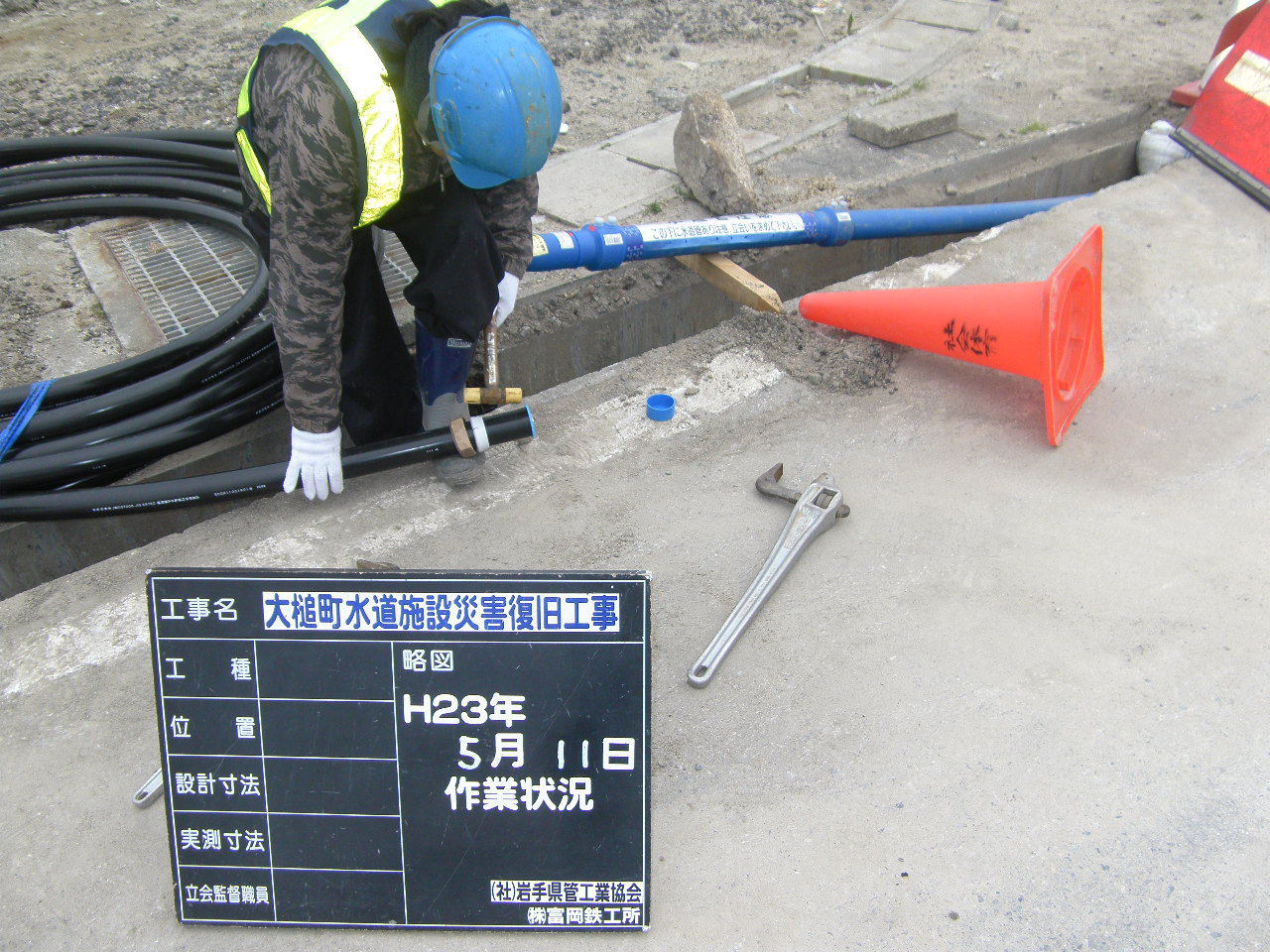 吉里吉里海岸付近の側溝内に水道管を敷設 拡大表示 ダウンロード 識別子 : 3013 タイトルよみ : キリキリカイガンフキンノソッコウナイニスイドウカンヲフセツ 說明・要約 : 側溝の清掃、水道管設置 作成者(撮影者) : 大槌町水道事業所 作成者(撮影者)よみ : オオツチチョウスイドウジギョウショ 提供者 : 大槌町 水道事業所 提供者よみ : オオツチチョウ スイドウジギョウショ 撮影(作成)場所 : 岩手県上閉伊郡大槌町 吉里吉里 撮影(作成)場所よみ : イワテケンカミヘイグンオオツチチョウ キリキリ 作成日・撮影日 : 2011年 5月 11日 カテゴリー : 水道 地域 : 吉里吉里地区 備考 : 一般公開 震災事象 ガレキ・啓開・インフラ復旧 > インフラ復旧 > 水道