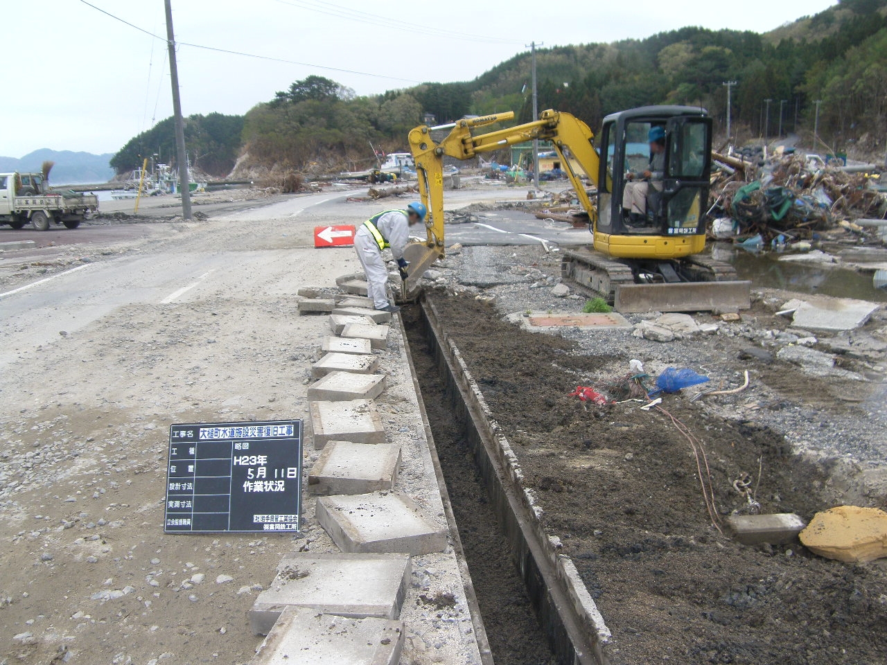 吉里吉里海岸付近の側溝内に水道管を敷設 拡大表示 ダウンロード 識別子 : 3016 タイトルよみ : キリキリカイガンフキンノソッコウナイニスイドウカンヲフセツ 說明・要約 : 側溝の清掃、水道管設置 作成者(撮影者) : 大槌町水道事業所 作成者(撮影者)よみ : オオツチチョウスイドウジギョウショ 提供者 : 大槌町 水道事業所 提供者よみ : オオツチチョウ スイドウジギョウショ 撮影(作成)場所 : 岩手県上閉伊郡大槌町 吉里吉里 撮影(作成)場所よみ : イワテケンカミヘイグンオオツチチョウ キリキリ 作成日・撮影日 : 2011年 5月 11日 カテゴリー : 水道 地域 : 吉里吉里地区 備考 : 一般公開 震災事象 ガレキ・啓開・インフラ復旧 > インフラ復旧 > 水道