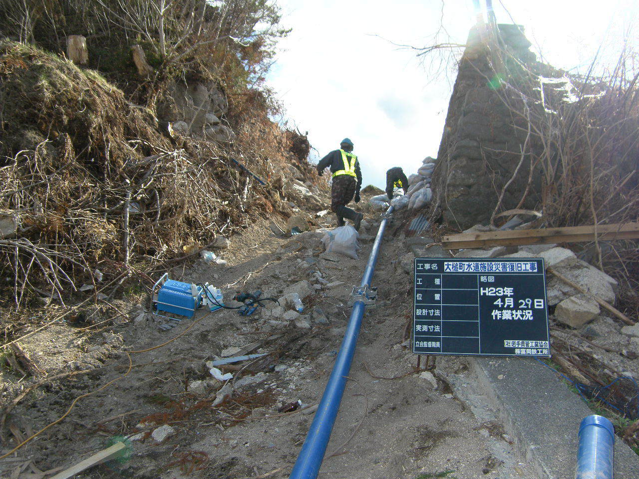 水道管の設置様子 拡大表示 ダウンロード 識別子 : 3021 タイトルよみ : スイドウカンノセッチヨウス 說明・要約 : 吉里吉里海岸付近水道管を埋め戻し 作成者(撮影者) : 大槌町水道事業所 作成者(撮影者)よみ : オオツチチョウスイドウジギョウショ 提供者 : 大槌町 水道事業所 提供者よみ : オオツチチョウ スイドウジギョウショ 撮影(作成)場所 : 岩手県上閉伊郡大槌町 吉里吉里 撮影(作成)場所よみ : イワテケンカミヘイグンオオツチチョウ キリキリ 作成日・撮影日 : 2011年 4月 29日 カテゴリー : 水道 地域 : 吉里吉里地区 備考 : 一般公開 震災事象 ガレキ・啓開・インフラ復旧 > インフラ復旧 > 水道