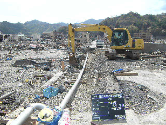 新町付近水道管の設置作業 拡大表示 ダウンロード 識別子 : 3042 タイトルよみ : シンチョウフキンスイドウカンノセッチサギョウ 說明・要約 : 大槌川沿いの水道管設置 作成者(撮影者) : 大槌町水道事業所 作成者(撮影者)よみ : オオツチチョウスイドウジギョウショ 提供者 : 大槌町 水道事業所 提供者よみ : オオツチチョウ スイドウジギョウショ 撮影(作成)場所 : 岩手県上閉伊郡大槌町 新町 撮影(作成)場所よみ : イワテケンカミヘイグンオオツチチョウ シンチョウ 作成日・撮影日 : 2011年 5月 7日 カテゴリー : 水道 地域 : 町方地区 備考 : 一般公開 震災事象 ガレキ・啓開・インフラ復旧 > インフラ復旧 > 水道