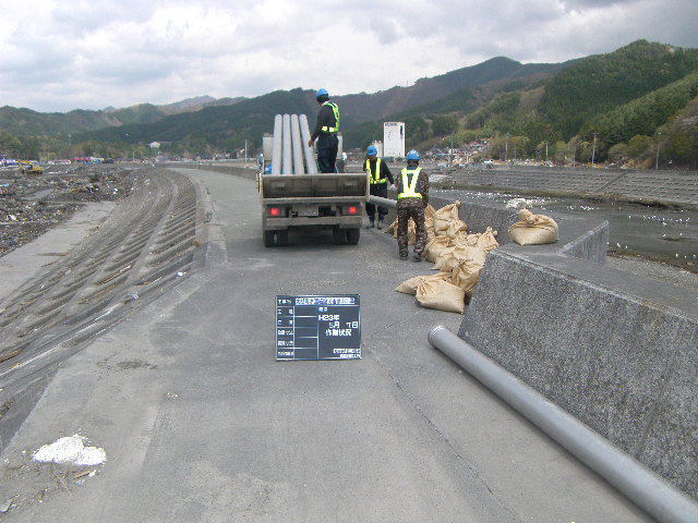 新町付近水道管の設置作業 拡大表示 ダウンロード 識別子 : 3049 タイトルよみ : シンチョウフキンスイドウカンノセッチサギョウ 說明・要約 : 大槌川沿いの水道管設置 作成者(撮影者) : 大槌町水道事業所 作成者(撮影者)よみ : オオツチチョウスイドウジギョウショ 提供者 : 大槌町 水道事業所 提供者よみ : オオツチチョウ スイドウジギョウショ 撮影(作成)場所 : 岩手県上閉伊郡大槌町 新町 撮影(作成)場所よみ : イワテケンカミヘイグンオオツチチョウ シンチョウ 作成日・撮影日 : 2011年 5月 7日 カテゴリー : 水道 地域 : 町方地区 備考 : 一般公開 震災事象 ガレキ・啓開・インフラ復旧 > インフラ復旧 > 水道
