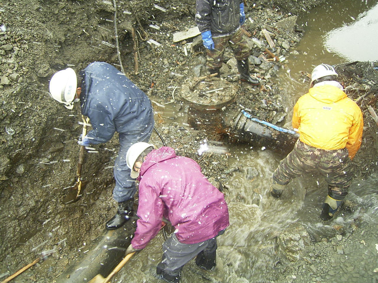 雪の中で水道工事 拡大表示 ダウンロード 識別子 : 3056 タイトルよみ : ユキノナカデスイドウコウジ 說明・要約 : 安渡の高架橋付近の工事 作成者(撮影者) : 大槌町水道事業所 作成者(撮影者)よみ : オオツチチョウスイドウジギョウショ 提供者 : 大槌町 水道事業所 提供者よみ : オオツチチョウ スイドウジギョウショ 撮影(作成)場所 : 岩手県上閉伊郡大槌町 安渡 撮影(作成)場所よみ : イワテケンカミヘイグンオオツチチョウ アンド 作成日・撮影日 : 2011年 4月 4日 カテゴリー : 水道 地域 : 安渡地区 備考 : 一般公開 震災事象 ガレキ・啓開・インフラ復旧 > インフラ復旧 > 水道