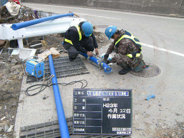 災害水道復旧工事 拡大表示 ダウンロード 識別子 : 3067 タイトルよみ : サイガイスイドウフッキュウコウジ 說明・要約 : 排水溝内で水道管工事 作成者(撮影者) : 大槌町水道事業所 作成者(撮影者)よみ : オオツチチョウスイドウジギョウショ 提供者 : 大槌町 水道事業所 提供者よみ : オオツチチョウ スイドウジギョウショ 撮影(作成)場所 : 岩手県上閉伊郡大槌町 大槌町 撮影(作成)場所よみ : イワテケンカミヘイグンオオツチチョウ オオツチチョウ 作成日・撮影日 : 2011年 4月 22日 カテゴリー : 水道 地域 : その他 備考 : 一般公開 震災事象 ガレキ・啓開・インフラ復旧 > インフラ復旧 > 水道