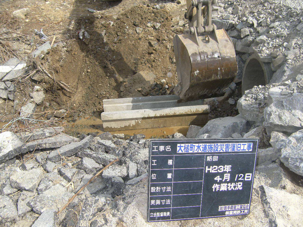 旧水道管撤去 拡大表示 ダウンロード 識別子 : 3088 タイトルよみ : キュウスイドウカンテッキョ 說明・要約 : 水道管の撤去と排水溝の設置 作成者(撮影者) : 大槌町水道事業所 作成者(撮影者)よみ : オオツチチョウスイドウジギョウショ 提供者 : 大槌町 水道事業所 提供者よみ : オオツチチョウ スイドウジギョウショ 撮影(作成)場所 : 岩手県上閉伊郡大槌町 吉里吉里 撮影(作成)場所よみ : イワテケンカミヘイグンオオツチチョウ キリキリ 作成日・撮影日 : 2011年 4月 12日 カテゴリー : 水道 地域 : 吉里吉里地区 備考 : 一般公開 震災事象 ガレキ・啓開・インフラ復旧 > インフラ復旧 > 水道