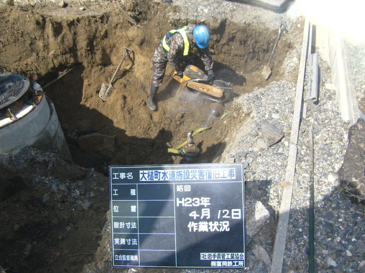 旧水道管撤去 拡大表示 ダウンロード 識別子 : 3090 タイトルよみ : キュウスイドウカンテッキョ 說明・要約 : 水道管の撤去と排水溝の設置 作成者(撮影者) : 大槌町水道事業所 作成者(撮影者)よみ : オオツチチョウスイドウジギョウショ 提供者 : 大槌町 水道事業所 提供者よみ : オオツチチョウ スイドウジギョウショ 撮影(作成)場所 : 岩手県上閉伊郡大槌町 吉里吉里 撮影(作成)場所よみ : イワテケンカミヘイグンオオツチチョウ キリキリ 作成日・撮影日 : 2011年 4月 12日 カテゴリー : 水道 地域 : 吉里吉里地区 備考 : 一般公開 震災事象 ガレキ・啓開・インフラ復旧 > インフラ復旧 > 水道