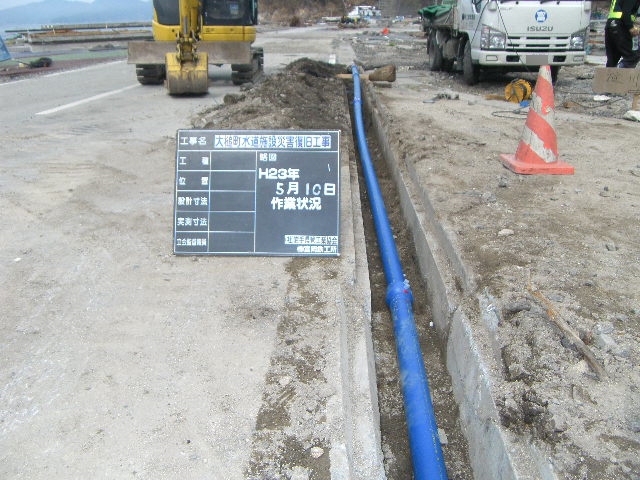 吉里吉里海岸付近の水道管設置 拡大表示 ダウンロード 識別子 : 3139 タイトルよみ : キリキリカイガンフキンノスイドウカンセッチ 說明・要約 : 溝を作り水道管を敷設、連結 作成者(撮影者) : 大槌町水道事業所 作成者(撮影者)よみ : オオツチチョウスイドウジギョウショ 提供者 : 大槌町 水道事業所 提供者よみ : オオツチチョウ スイドウジギョウショ 撮影(作成)場所 : 岩手県上閉伊郡大槌町 吉里吉里 撮影(作成)場所よみ : イワテケンカミヘイグンオオツチチョウ キリキリ 作成日・撮影日 : 2011年 5月 10日 カテゴリー : 水道 地域 : 吉里吉里地区 備考 : 一般公開 震災事象 ガレキ・啓開・インフラ復旧 > インフラ復旧 > 水道