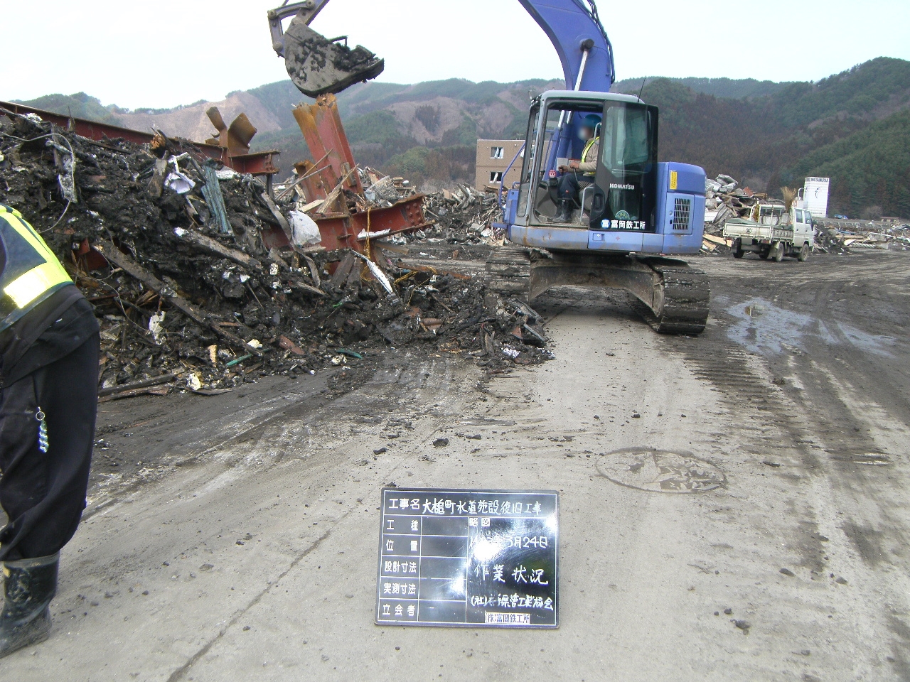 末広町でのガレキ撤去 拡大表示 ダウンロード 識別子 : 3157 タイトルよみ : スエヒロチョウデノガレキテッキョ 說明・要約 : 末広町の道路沿いのガレキ撤去 作成者(撮影者) : 大槌町水道事業所 作成者(撮影者)よみ : オオツチチョウスイドウジギョウショ 提供者 : 大槌町 水道事業所 提供者よみ : オオツチチョウ スイドウジギョウショ 撮影(作成)場所 : 岩手県上閉伊郡大槌町 末広町 撮影(作成)場所よみ : イワテケンカミヘイグンオオツチチョウ スエヒロチョウ 作成日・撮影日 : 2011年 3月 24日 カテゴリー : がれき処理 地域 : 町方地区 備考 : 一般公開 震災事象 ガレキ・啓開・インフラ復旧 > インフラ復旧 > 水道