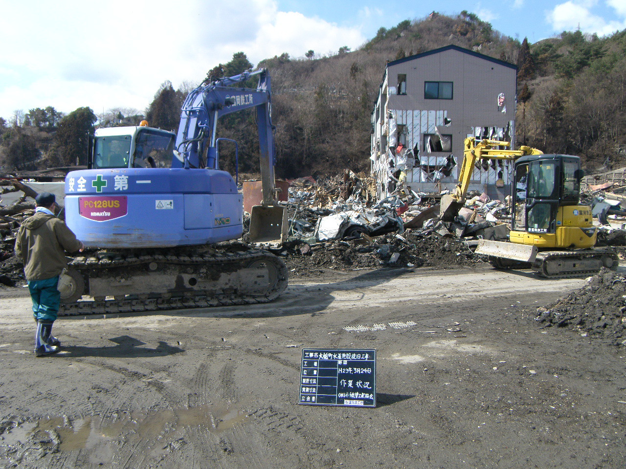 末広町でのガレキ撤去 拡大表示 ダウンロード 識別子 : 3158 タイトルよみ : スエヒロチョウデノガレキテッキョ 說明・要約 : 末広町の道路沿いのガレキ撤去 作成者(撮影者) : 大槌町水道事業所 作成者(撮影者)よみ : オオツチチョウスイドウジギョウショ 提供者 : 大槌町 水道事業所 提供者よみ : オオツチチョウ スイドウジギョウショ 撮影(作成)場所 : 岩手県上閉伊郡大槌町 末広町 撮影(作成)場所よみ : イワテケンカミヘイグンオオツチチョウ スエヒロチョウ 作成日・撮影日 : 2011年 3月 24日 カテゴリー : がれき処理 地域 : 町方地区 備考 : 一般公開 震災事象 ガレキ・啓開・インフラ復旧 > インフラ復旧 > 水道