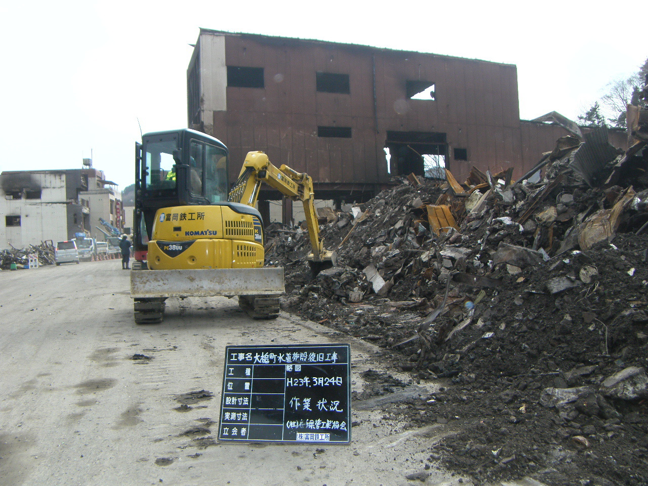 末広町でのガレキ撤去 拡大表示 ダウンロード 識別子 : 3160 タイトルよみ : スエヒロチョウデノガレキテッキョ 說明・要約 : 末広町の道路沿いのガレキ撤去 作成者(撮影者) : 大槌町水道事業所 作成者(撮影者)よみ : オオツチチョウスイドウジギョウショ 提供者 : 大槌町 水道事業所 提供者よみ : オオツチチョウ スイドウジギョウショ 撮影(作成)場所 : 岩手県上閉伊郡大槌町 末広町 撮影(作成)場所よみ : イワテケンカミヘイグンオオツチチョウ スエヒロチョウ 作成日・撮影日 : 2011年 3月 24日 カテゴリー : がれき処理 地域 : 町方地区 備考 : 一般公開 震災事象 ガレキ・啓開・インフラ復旧 > インフラ復旧 > 水道