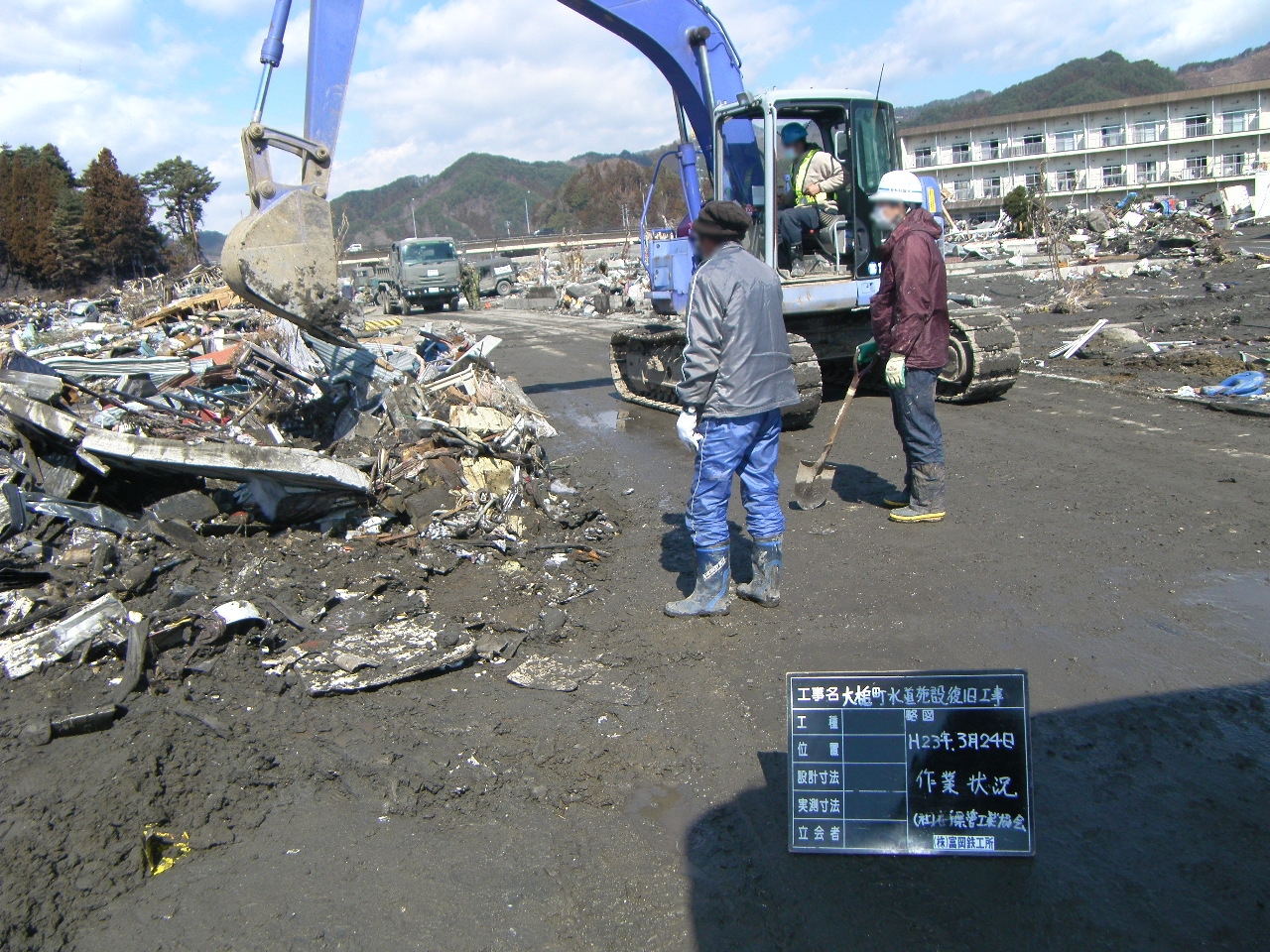 末広町でのガレキ撤去 拡大表示 ダウンロード 識別子 : 3169 タイトルよみ : スエヒロチョウデノガレキテッキョ 說明・要約 : 末広町の道路沿いのガレキ撤去 作成者(撮影者) : 大槌町水道事業所 作成者(撮影者)よみ : オオツチチョウスイドウジギョウショ 提供者 : 大槌町 水道事業所 提供者よみ : オオツチチョウ スイドウジギョウショ 撮影(作成)場所 : 岩手県上閉伊郡大槌町 末広町 撮影(作成)場所よみ : イワテケンカミヘイグンオオツチチョウ スエヒロチョウ 作成日・撮影日 : 2011年 3月 24日 カテゴリー : がれき処理 地域 : 町方地区 備考 : 一般公開 震災事象 ガレキ・啓開・インフラ復旧 > インフラ復旧 > 水道