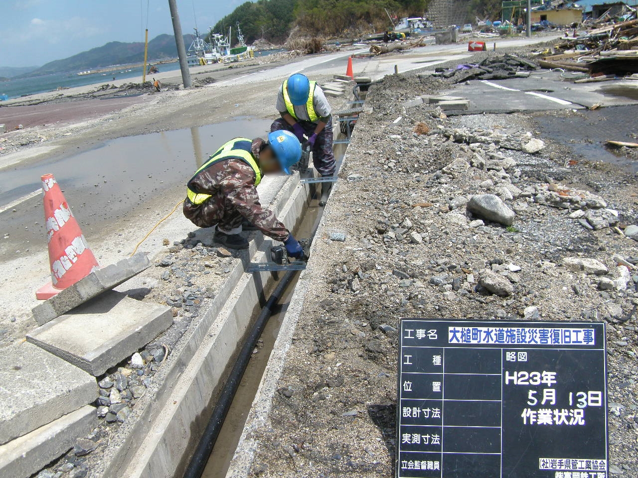 水道管の埋設工事 拡大表示 ダウンロード 識別子 : 3178 タイトルよみ : スイドウカンノマイセツコウジ 說明・要約 : 吉里吉里海岸付近の水道管埋設工事 作成者(撮影者) : 大槌町水道事業所 作成者(撮影者)よみ : オオツチチョウスイドウジギョウショ 提供者 : 大槌町 水道事業所 提供者よみ : オオツチチョウ スイドウジギョウショ 撮影(作成)場所 : 岩手県上閉伊郡大槌町 吉里吉里 撮影(作成)場所よみ : イワテケンカミヘイグンオオツチチョウ キリキリ 作成日・撮影日 : 2011年 5月 13日 カテゴリー : 水道 地域 : 吉里吉里地区 備考 : 一般公開 震災事象 ガレキ・啓開・インフラ復旧 > インフラ復旧 > 水道
