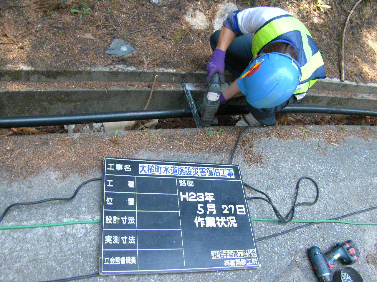 水道管の固定作業 拡大表示 ダウンロード 識別子 : 3206 タイトルよみ : スイドウカンノコテイサギョウ 說明・要約 : 側溝内に水道管を固定 作成者(撮影者) : 大槌町水道事業所 作成者(撮影者)よみ : オオツチチョウスイドウジギョウショ 提供者 : 大槌町 水道事業所 提供者よみ : オオツチチョウ スイドウジギョウショ 撮影(作成)場所 : 岩手県上閉伊郡大槌町 大槌町 撮影(作成)場所よみ : イワテケンカミヘイグンオオツチチョウ オオツチチョウ 作成日・撮影日 : 2011年 5月 27日 カテゴリー : 水道 地域 : その他 備考 : 一般公開 震災事象 ガレキ・啓開・インフラ復旧 > インフラ復旧 > 水道
