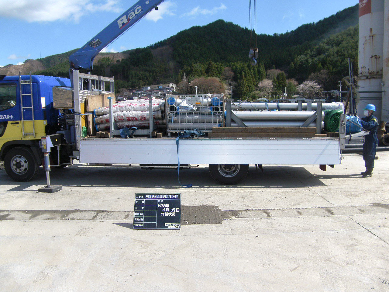 水道管の搬入 拡大表示 ダウンロード 識別子 : 3208 タイトルよみ : スイドウカンノハンニュウ 說明・要約 : 水道管がトラックで運ばれてきた 作成者(撮影者) : 大槌町水道事業所 作成者(撮影者)よみ : オオツチチョウスイドウジギョウショ 提供者 : 大槌町 水道事業所 提供者よみ : オオツチチョウ スイドウジギョウショ 撮影(作成)場所 : 岩手県上閉伊郡大槌町 大槌町 撮影(作成)場所よみ : イワテケンカミヘイグンオオツチチョウ オオツチチョウ 作成日・撮影日 : 2011年 4月 29日 カテゴリー : 水道 地域 : その他 備考 : 一般公開 震災事象 ガレキ・啓開・インフラ復旧 > インフラ復旧 > 水道