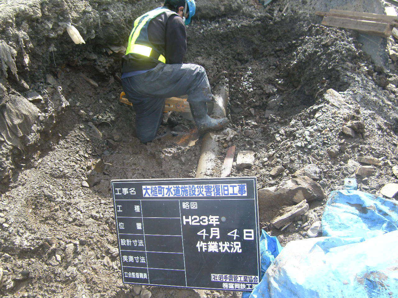 安渡付近に水道管設置、埋設 拡大表示 ダウンロード 識別子 : 3216 タイトルよみ : アンドフキンニスイドウカンセッチ、マイセツ 說明・要約 : 安渡の道路沿いに水道管を設置 作成者(撮影者) : 大槌町水道事業所 作成者(撮影者)よみ : オオツチチョウスイドウジギョウショ 提供者 : 大槌町 水道事業所 提供者よみ : オオツチチョウ スイドウジギョウショ 撮影(作成)場所 : 岩手県上閉伊郡大槌町 安渡 撮影(作成)場所よみ : イワテケンカミヘイグンオオツチチョウ アンド 作成日・撮影日 : 2011年 4月 4日 カテゴリー : 水道 地域 : 安渡地区 備考 : 一般公開 震災事象 ガレキ・啓開・インフラ復旧 > インフラ復旧 > 水道