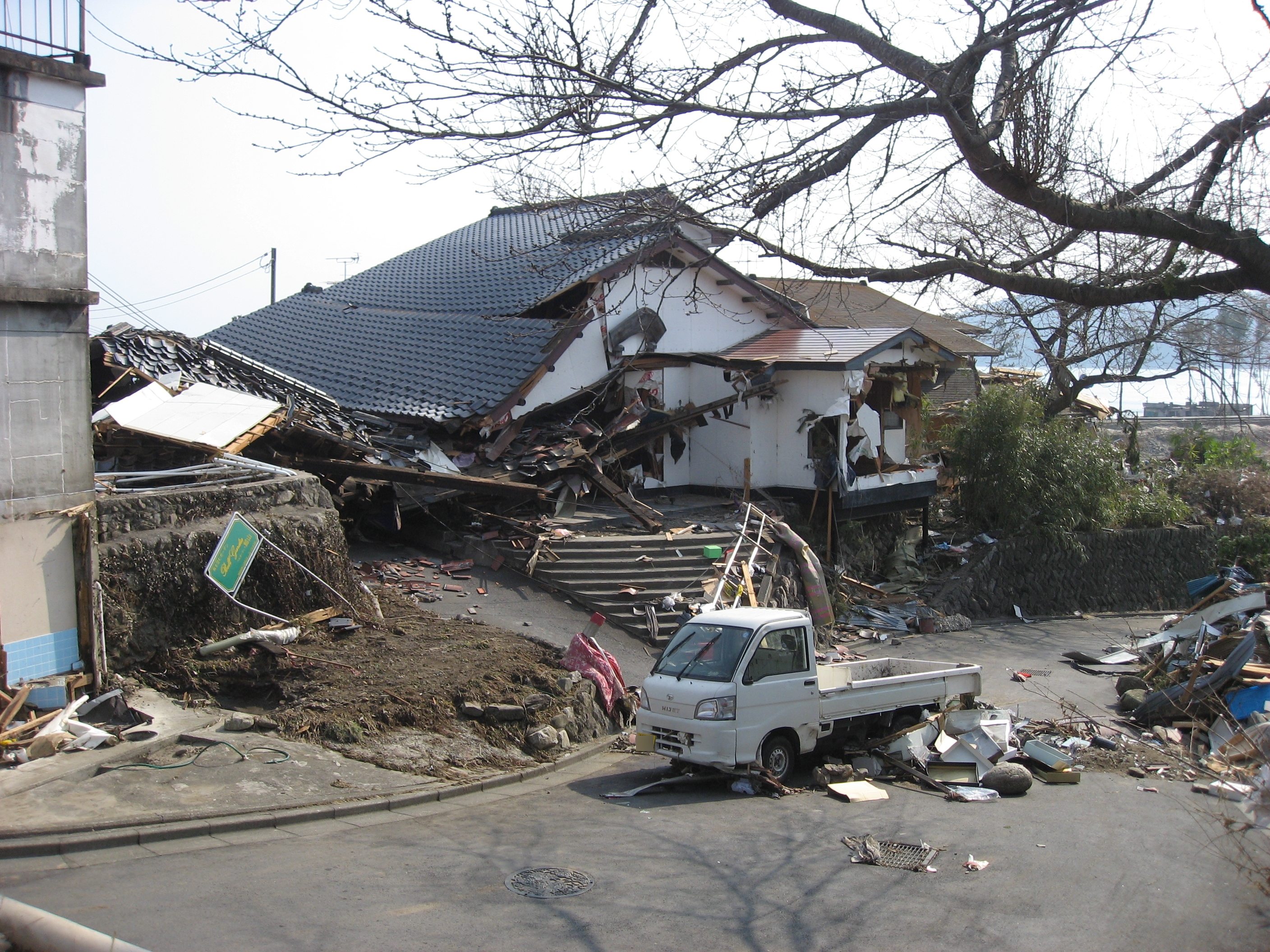 大槌町吉里吉里、JR浪板海岸駅付近の京菓子司「もりかまど」の家屋被災状況を撮影。