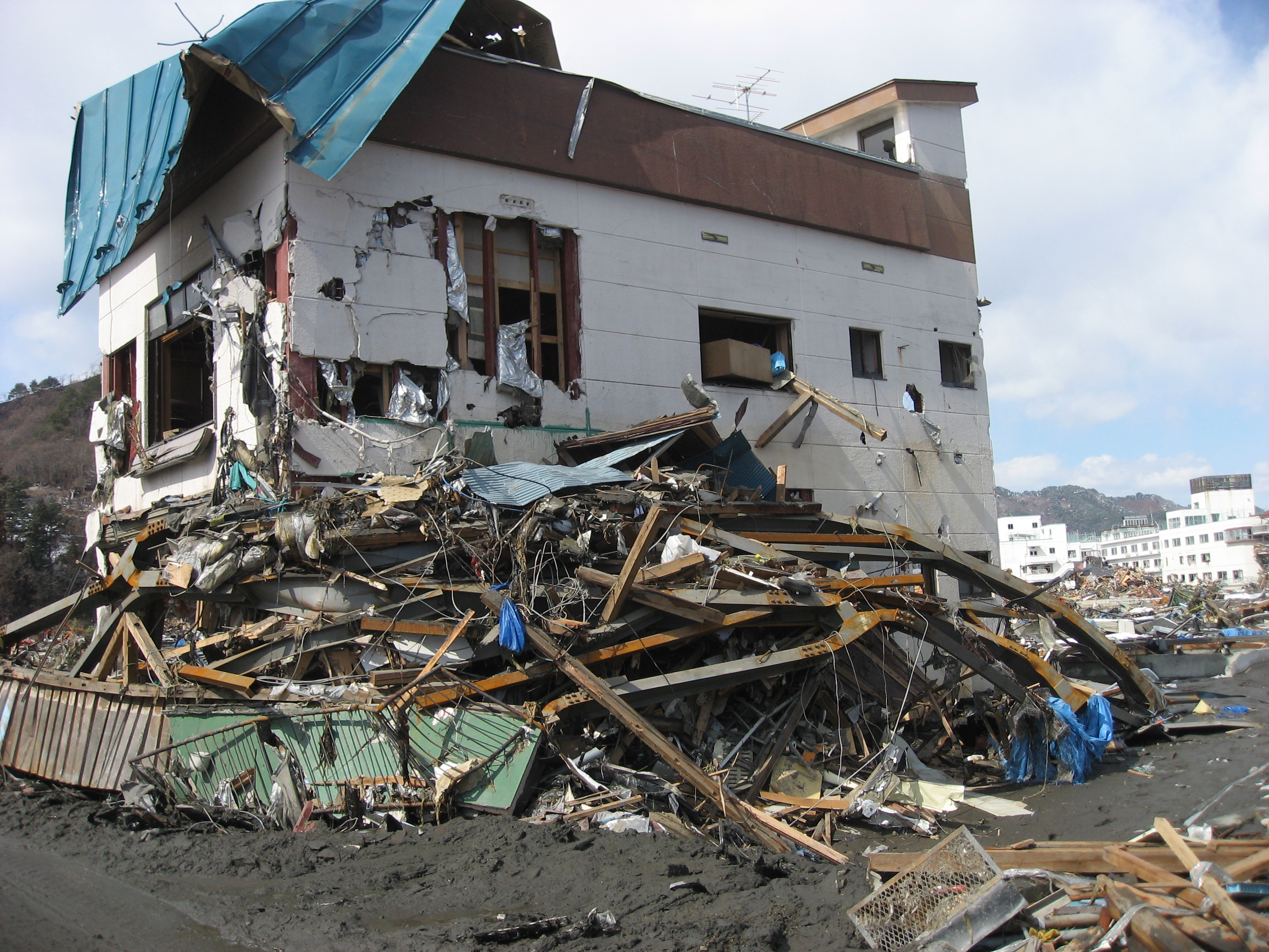 キュウオオツチビョウインフキン、タテモノヒサイジョウキョウヲサツエイ
