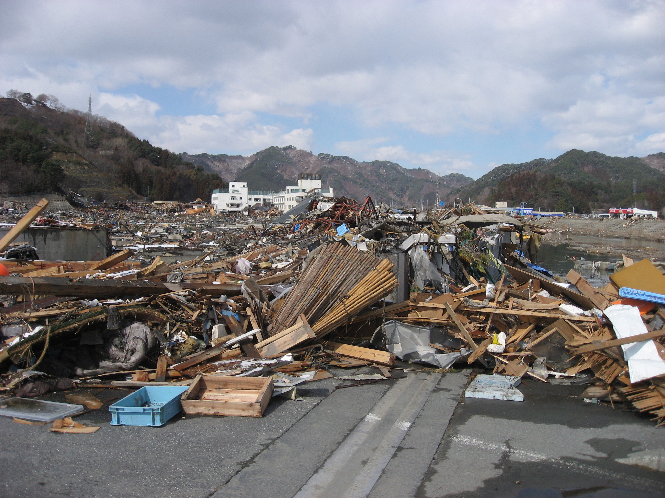 大槌川堤防 拡大表示 ダウンロード 識別子 : 12473 タイトルよみ : オオツチガワテイボウ 說明・要約 : 大槌川をのぼってきた津波によって流された新町地区撮影 作成者(撮影者) : 大槌町水道事業所 作成者(撮影者)よみ : オオツチチョウスイドウジギョウショ 提供者 : 大槌町 水道事業所 提供者よみ : オオツチチョウ スイドウジギョウショ 撮影(作成)場所 : 岩手県上閉伊郡大槌町 新町 撮影(作成)場所よみ : イワテケンカミヘイグンオオツチチョウ シンチョウ 作成日・撮影日 : 2011年 3月 17日 カテゴリー : 物的被害 地域 : 町方地区 備考 : 一般公開