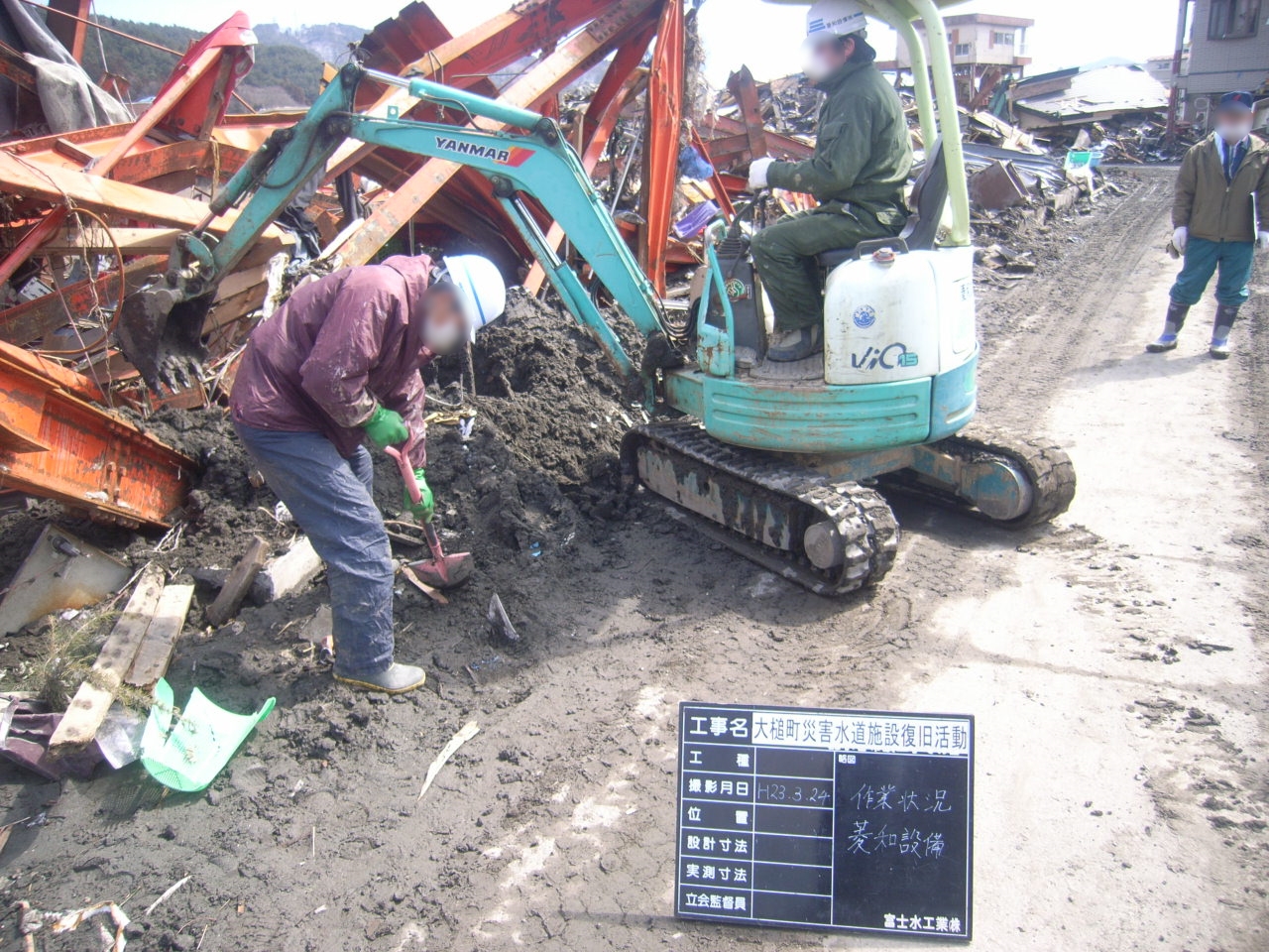 水道管を探す作業員 拡大表示 ダウンロード 識別子 : 3314 タイトルよみ : スイドウカンヲサガスサギョウイン 說明・要約 : 水道復旧作業現場撮影 作成者(撮影者) : 大槌町水道事業所 作成者(撮影者)よみ : オオツチチョウスイドウジギョウショ 提供者 : 大槌町 水道事業所 提供者よみ : オオツチチョウ スイドウジギョウショ 撮影(作成)場所 : 岩手県上閉伊郡大槌町 大槌町 撮影(作成)場所よみ : イワテケンカミヘイグンオオツチチョウ オオツチチョウ 作成日・撮影日 : 2011年 3月 24日 カテゴリー : 水道 地域 : その他 備考 : 一般公開 震災事象 ガレキ・啓開・インフラ復旧 > インフラ復旧 > 水道