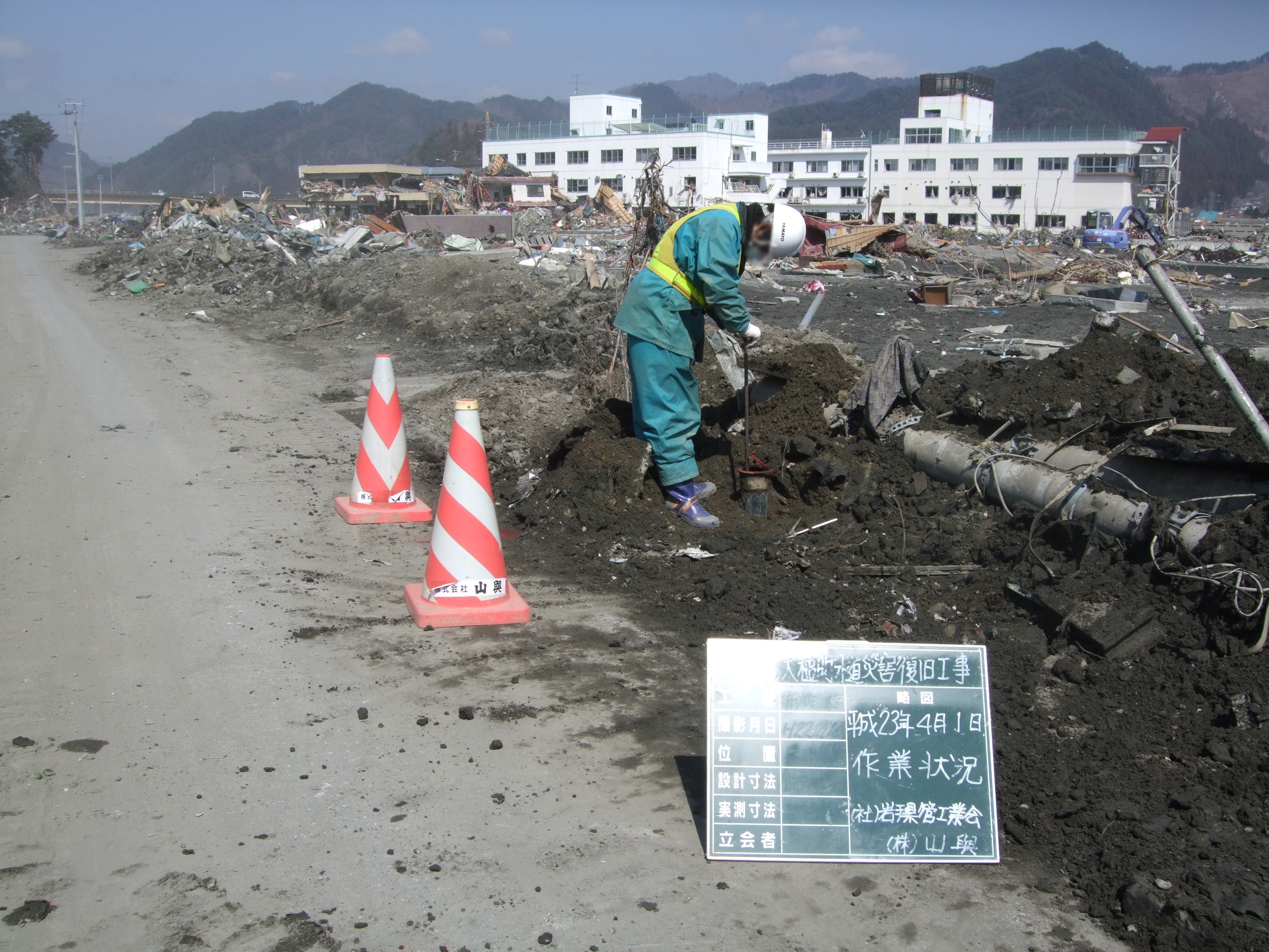 災害水道復旧作業 大槌病院付近 拡大表示 ダウンロード 識別子 : 3346 タイトルよみ : サイガイスイドウフッキュウサギョウ オオツチビョウインフキン 說明・要約 : 大槌県立病院付近水道復旧作業撮影 作成者(撮影者) : 大槌町水道事業所 作成者(撮影者)よみ : オオツチチョウスイドウジギョウショ 提供者 : 大槌町 水道事業所 提供者よみ : オオツチチョウ スイドウジギョウショ 撮影(作成)場所 : 岩手県上閉伊郡大槌町 撮影(作成)場所よみ : イワテケンカミヘイグンオオツチチョウ 作成日・撮影日 : 2011年 4月 1日 カテゴリー : 水道 地域 : 町方地区 備考 : 一般公開 震災事象 ガレキ・啓開・インフラ復旧 > インフラ復旧 > 水道