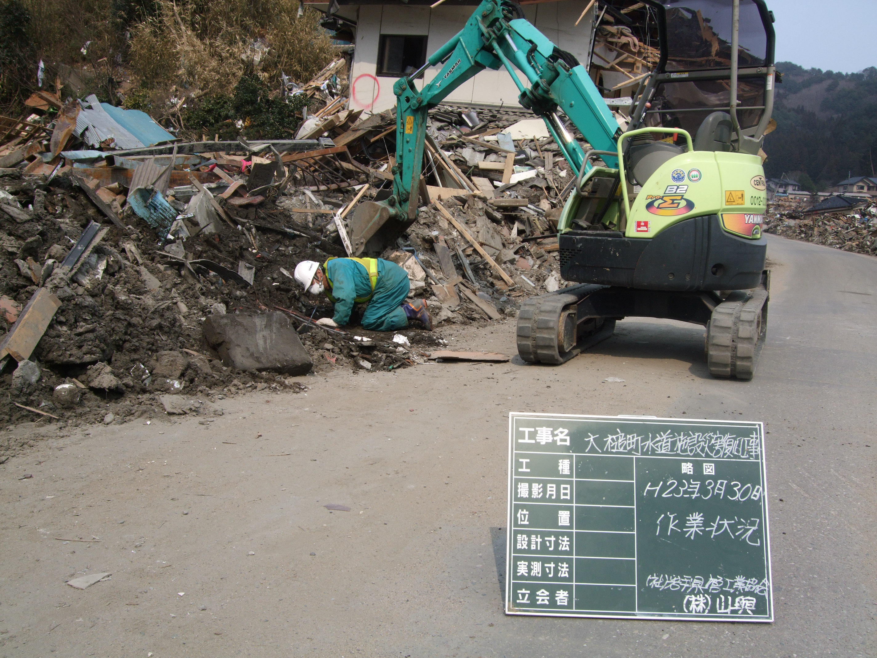 掘った穴を確認する作業員 拡大表示 ダウンロード 識別子 : 3361 タイトルよみ : ホッタアナヲカクニンスルサギョウイン 說明・要約 : 水道復旧工事の様子 作成者(撮影者) : 大槌町水道事業所 作成者(撮影者)よみ : オオツチチョウスイドウジギョウショ 提供者 : 大槌町 水道事業所 提供者よみ : オオツチチョウ スイドウジギョウショ 撮影(作成)場所 : 岩手県上閉伊郡大槌町 大槌町 撮影(作成)場所よみ : イワテケンカミヘイグンオオツチチョウ オオツチチョウ 作成日・撮影日 : 2011年 3月 30日 カテゴリー : 水道 地域 : その他 備考 : 一般公開 震災事象 ガレキ・啓開・インフラ復旧 > インフラ復旧 > 水道