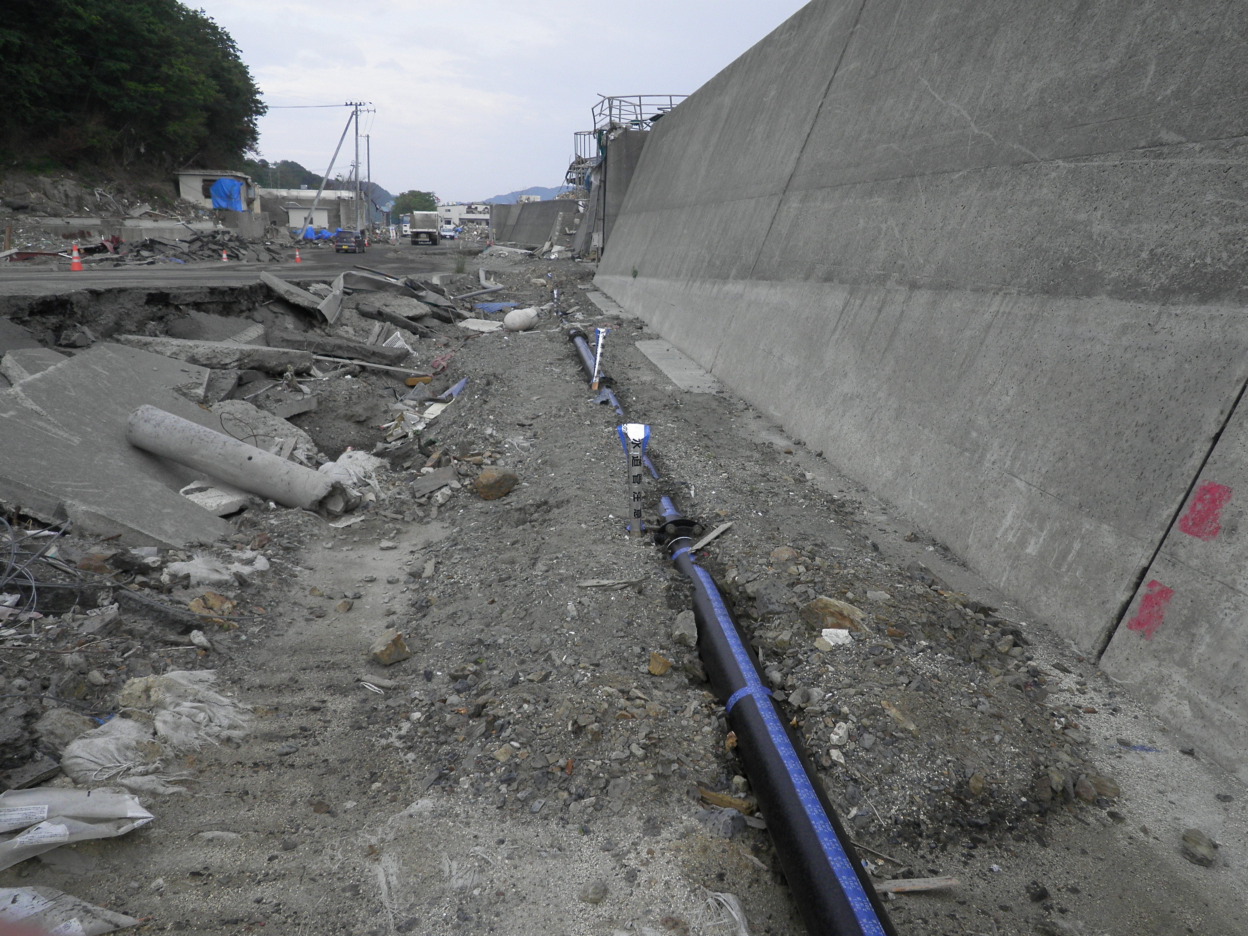 安渡から赤浜方面の防潮堤沿いの水道管 拡大表示 ダウンロード 識別子 : 3367 タイトルよみ : アンドカラアカハマホウメンノボウチョウテイゾイノスイドウカン 說明・要約 : 安渡から赤浜方面へ敷設された水道管 作成者(撮影者) : 大槌町水道事業所 作成者(撮影者)よみ : オオツチチョウスイドウジギョウショ 提供者 : 大槌町 水道事業所 提供者よみ : オオツチチョウ スイドウジギョウショ 撮影(作成)場所 : 岩手県上閉伊郡大槌町 安渡 撮影(作成)場所よみ : イワテケンカミヘイグンオオツチチョウ アンド 作成日・撮影日 : 2011年 6月 21日 カテゴリー : 水道 地域 : 安渡地区 備考 : 一般公開 震災事象 ガレキ・啓開・インフラ復旧 > インフラ復旧 > 水道