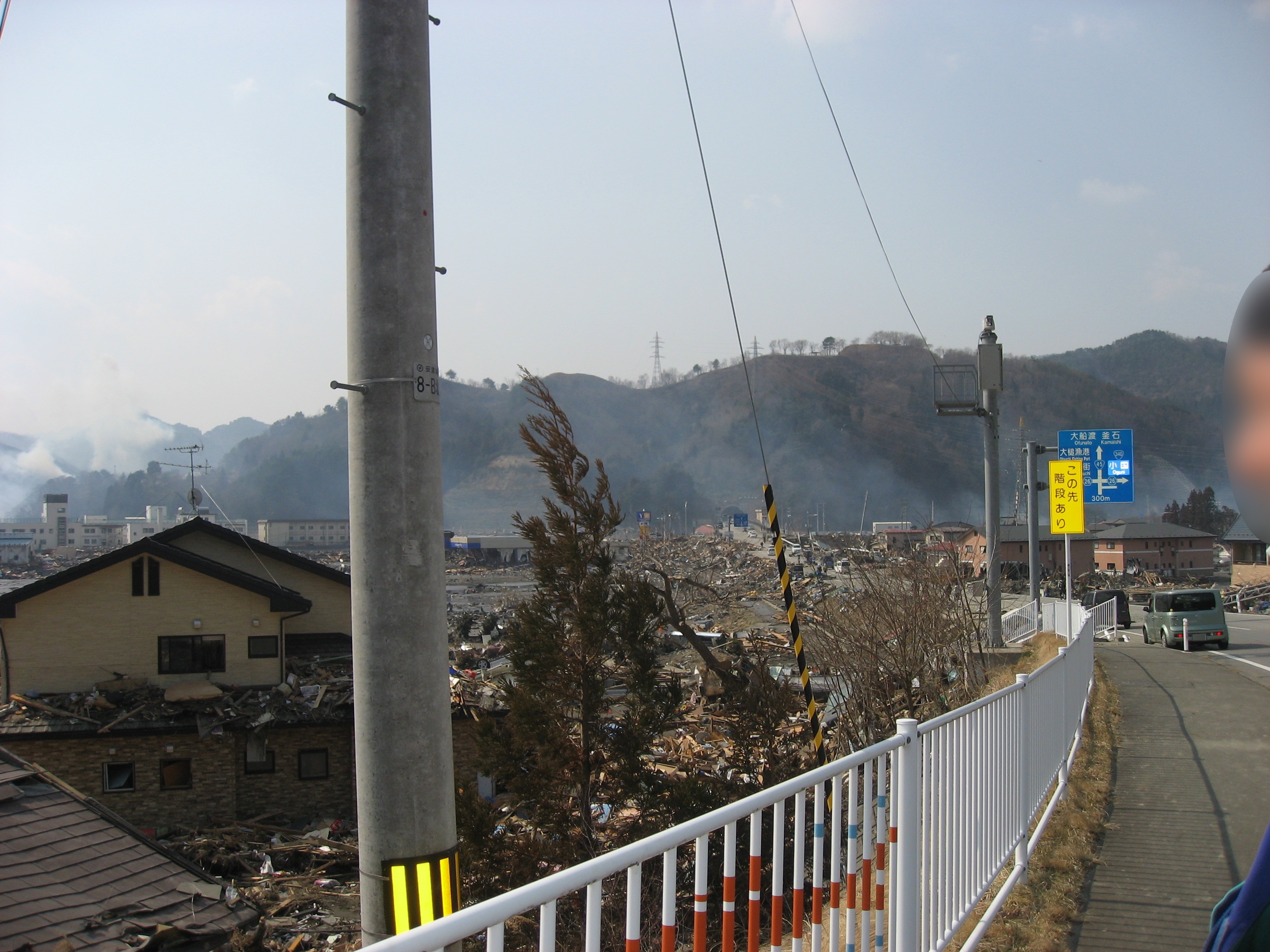 左側に薬王堂、大槌病院がある