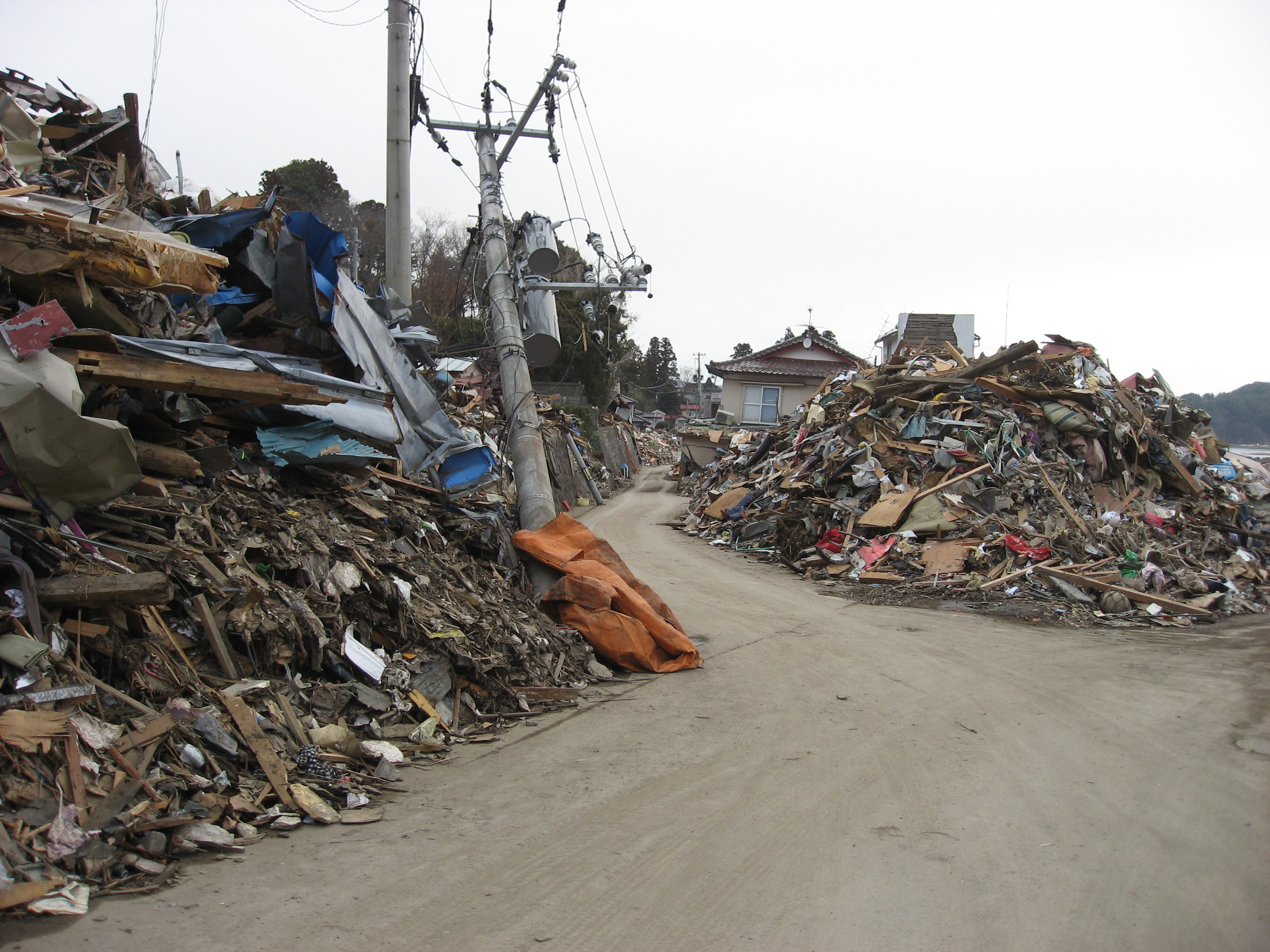 新おおつち漁業協同組合(震災前は岩手銀行吉里吉里支店)から海岸方面を撮っている