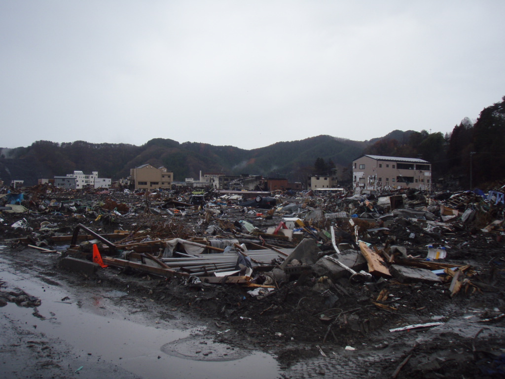 大槌病院付近から撮影した町内