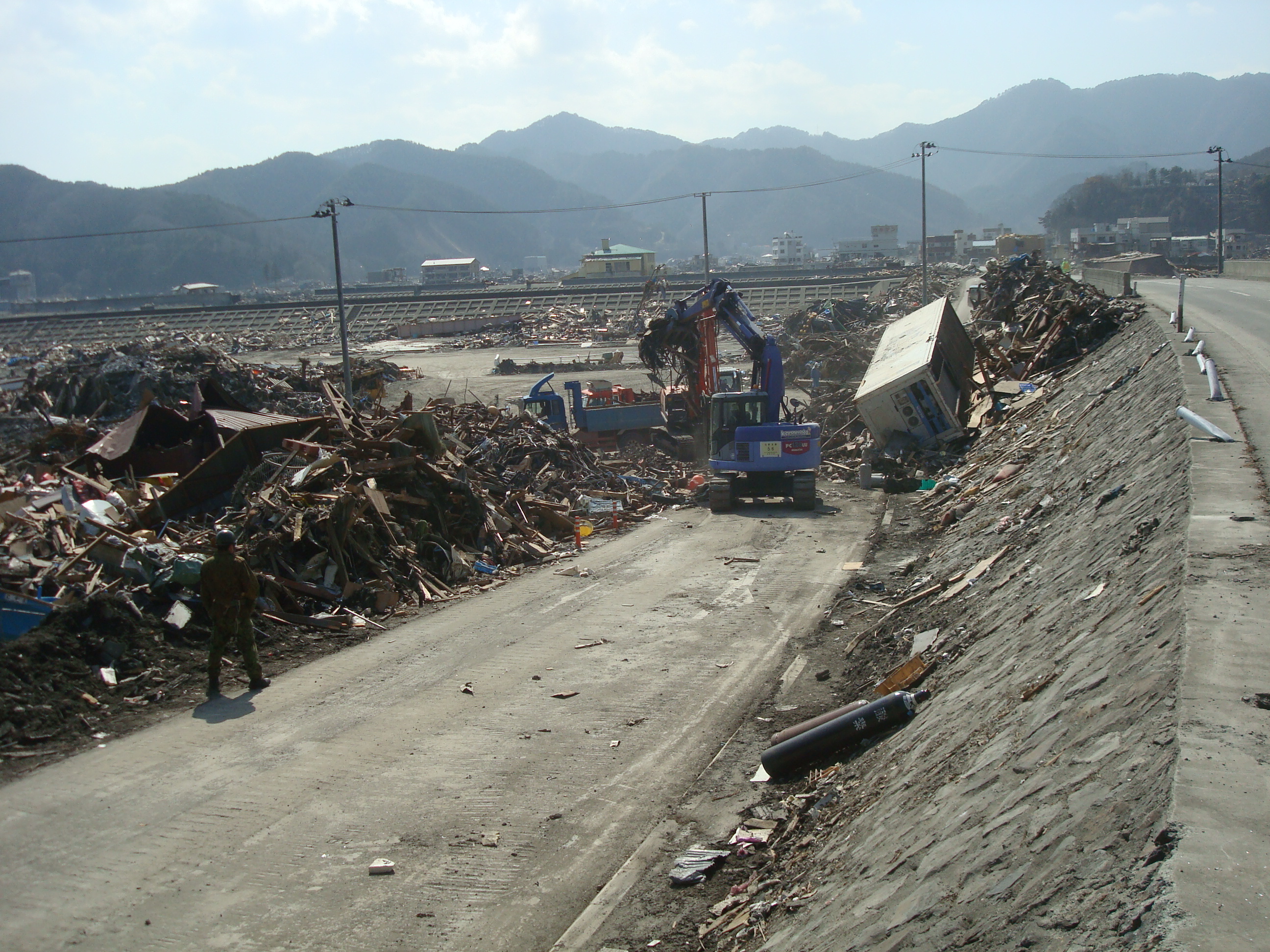 国道から町内を撮影 拡大表示 ダウンロード 識別子 : 2226 タイトルよみ : コクドウカラチョウナイヲサツエイ 說明・要約 : 正面に雨水ポンプ場がある 作成者(撮影者) : 大槌町水道事業所 作成者(撮影者)よみ : オオツチチョウスイドウジギョウショ 提供者 : 大槌町 水道事業所 提供者よみ : オオツチチョウ スイドウジギョウショ 撮影(作成)場所 : 岩手県上閉伊郡大槌町 安渡 撮影(作成)場所よみ : イワテケンカミヘイグンオオツチチョウ アンド 作成日・撮影日 : 2011年 4月 1日 カテゴリー : がれき処理 物的被害 地域 : 安渡地区 備考 : 一般公開 震災事象 ガレキ・啓開・インフラ復旧 > ガレキ処理 > ガレキ処理