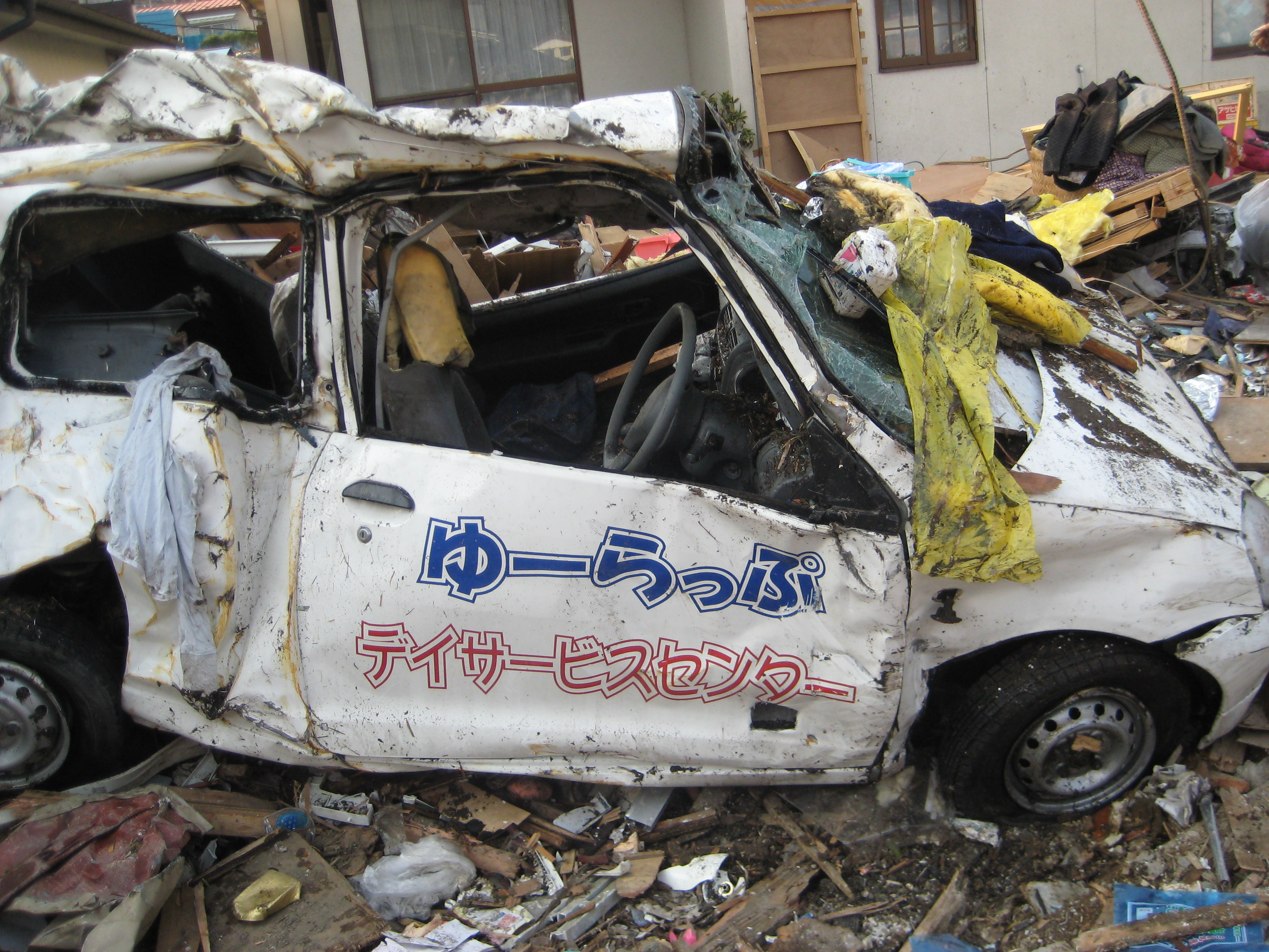 車両の被災状況 拡大表示 ダウンロード 識別子 : 12734 タイトルよみ : シャリョウノヒサイジョウキョウ 說明・要約 : ゆーらっぷデイサービスセンターの車両被災状況 作成者(撮影者) : 社会福祉法人 堤福祉会 作成者(撮影者)よみ : シャカイフクシホウジン ツツミフクシカイ 提供者 : 社会福祉法人 堤福祉会 提供者よみ : シャカイフクシホウジン ツツミフクシカイ 撮影(作成)場所 : 岩手県上閉伊郡大槌町 大槌町 撮影(作成)場所よみ : イワテケンカミヘイグンオオツチチョウ オオツチチョウ 作成日・撮影日 : 2011年 3月 31日 カテゴリー : 物的被害 地域 : その他 備考 : 一般公開